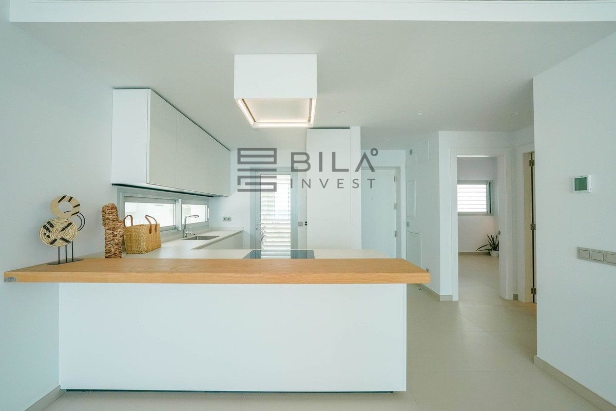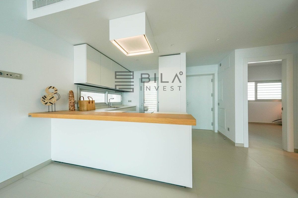 The two bedrooms, designed with great attention to detail, offer a tranquil retreat, ensuring restful nights and serene mornings. The master suite features a private bathtub, adding a touch of exclusivity to this luxurious home. Furthermore, the property includes multiple extras, such as underfloor heating, integrated LED lighting, an aerothermal system for heating and cooling, electric blinds, and filtered water.