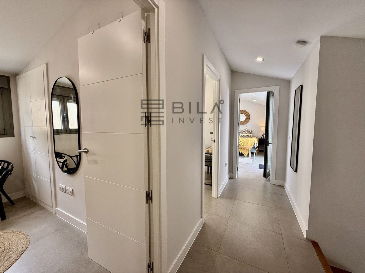 Upstairs has three bedrooms with two bathrooms, one of them en suite, and a spectacular terrace with unobstructed sea views.