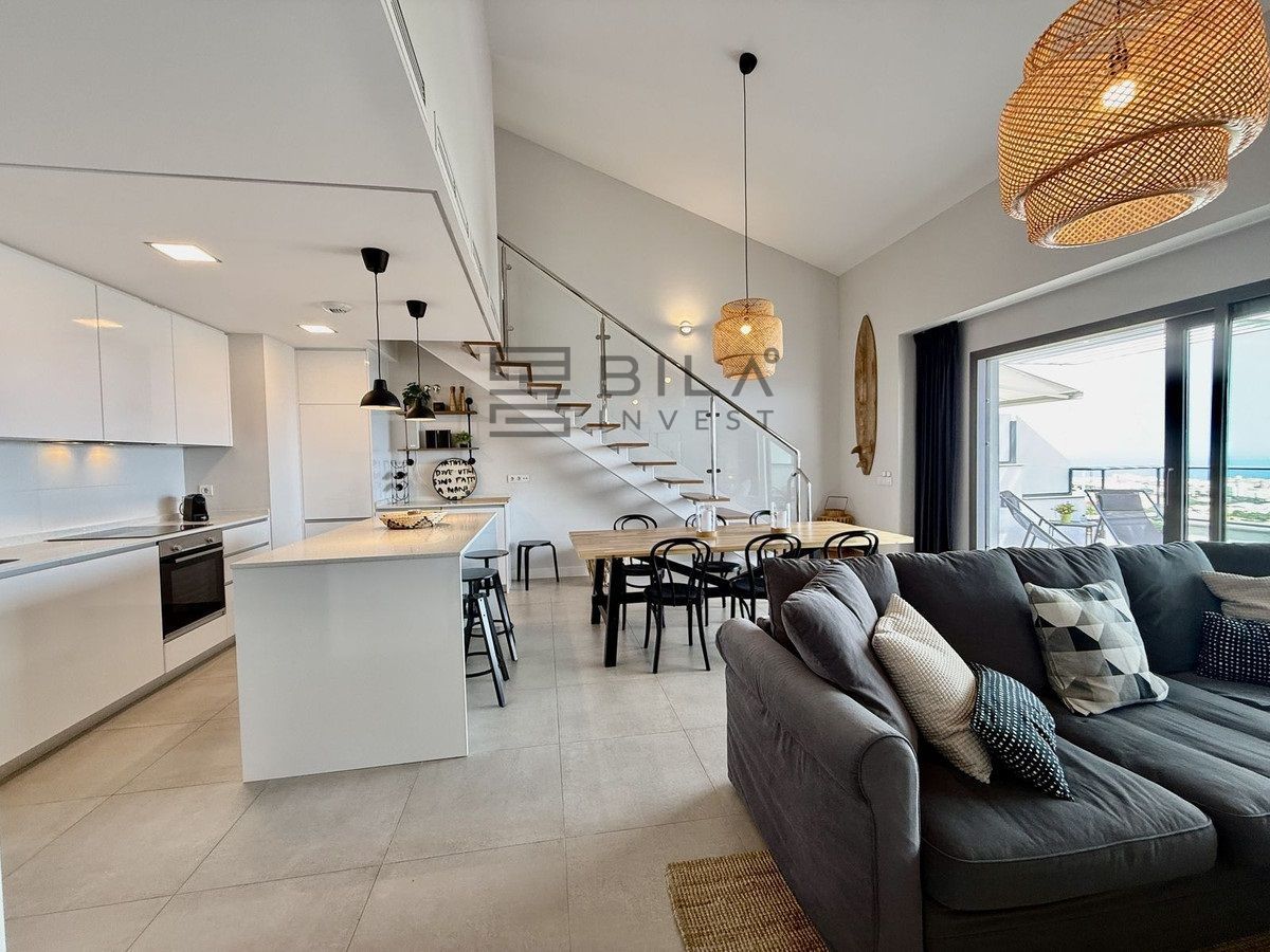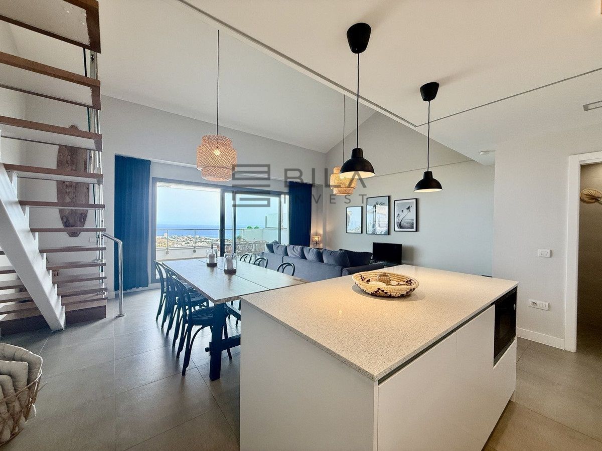 On the ground floor we find the living-dining room with access to the ground floor terrace with panoramic sea views, with the island kitchen equipped with the latest appliances, guest toilet.