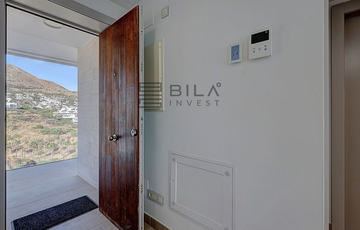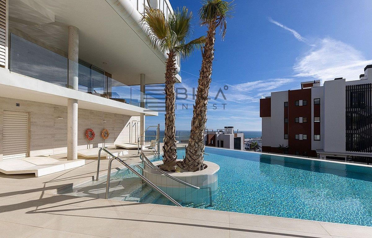 This modern apartment, located in the sought-after residential area of El Higueron, offers stunning sea views from both the living area and the main bedroom. Ideally situated within walking distance of the beach, train station, a nearby 5-star hotel, and various amenities, the property enjoys a prime location. The open-plan living and dining area features a fully fitted kitchen equipped with BOSCH appliances and opens onto a spacious terrace. The main bedroom boasts an en-suite bathroom and spectacular sea views. There is also a second bedroom, an additional bathroom, and a separate laundry room for added convenience. The apartment comes with two underground parking spaces and a storage room. Residents can enjoy communal facilities, including two infinity pools, a co-working space and 24-hour security. Additionally, residents have access to the amenities of the adjacent 5-star hotel, which offers a spa, gym, paddle and tennis courts, as well as a selection of restaurants and bars. With its fantastic location, modern design, and access to exceptional facilities, this property is the perfect choice for a second residence or holiday home on the Costa del Sol.