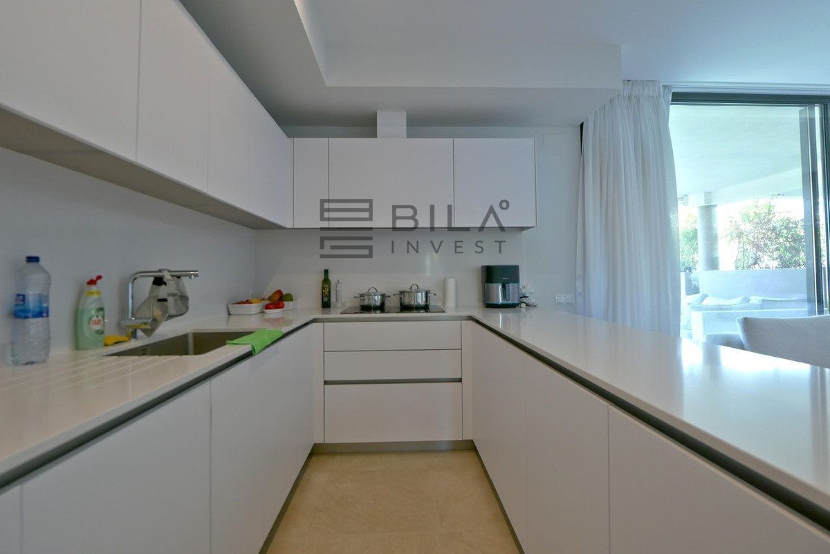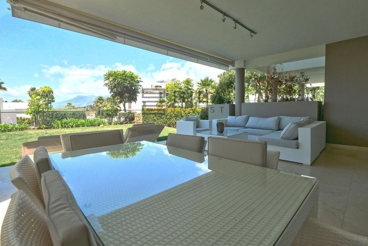 An amazing opportunity to acquire a property in East Marbella´s most iconic complex. This luxury modern apartment is an elevated ground floor property offering the benefit of a large terrace and closed garden while also maintaining privacy with a very large outdoors space allowing one to really enjoy the kind of outdoor living that Andalucia allows. The apartment itself has a modern open plan kitchen, floor to ceiling windows that can open up into the walls allowing the terrace and living area to be as one. Located by Cabopino Golf in Marbella and walking distance to the club house this is one of Marbella´s top locations. The property is also just a couple of minutes drive to the beaches and port of Cabopino. We strongly recommend a viewing.
