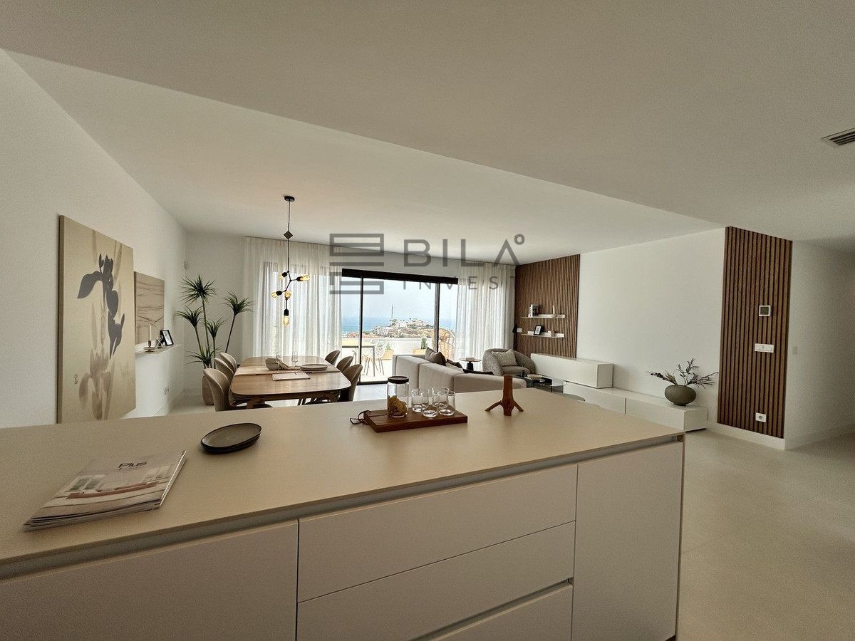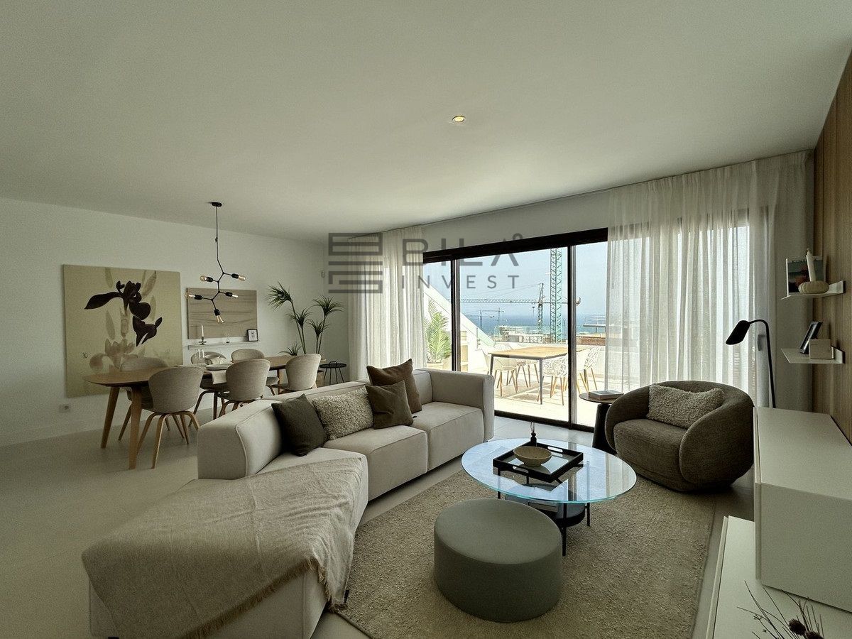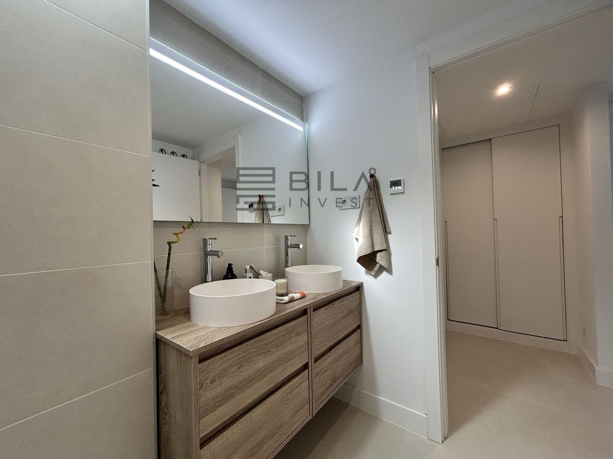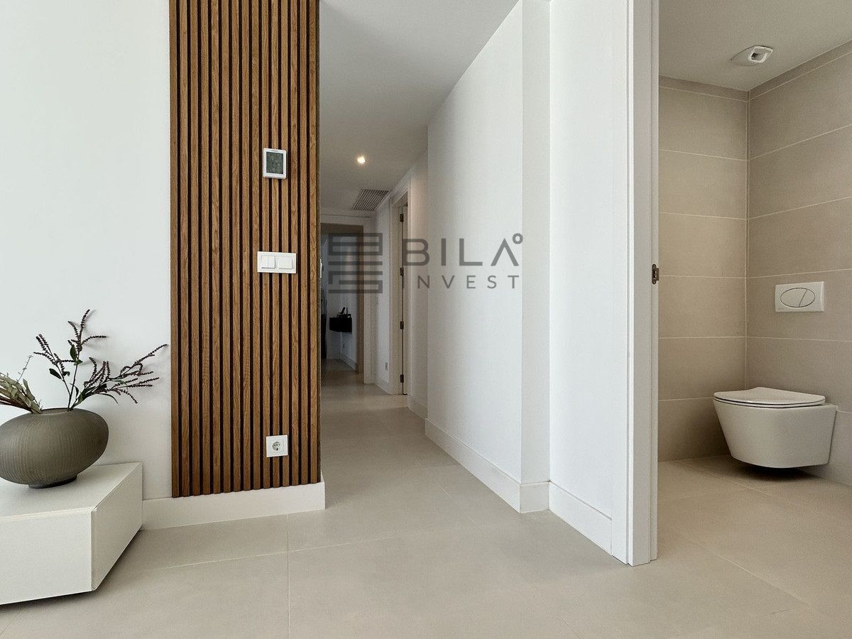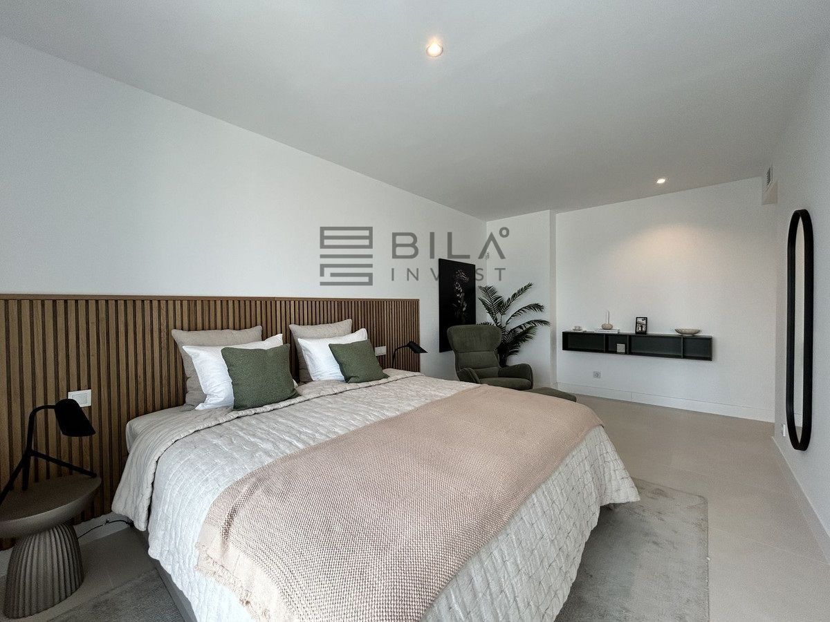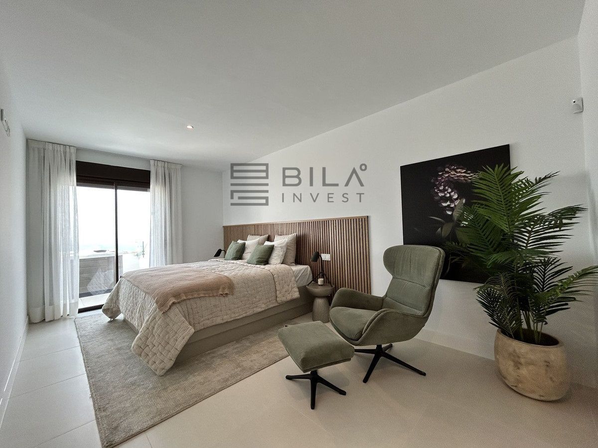 This exclusive, brand-new penthouse with three bedrooms and a large south-facing terrace with sea and mountain views is fully furnished with high-end designer pieces by Ikonia Ilusion&Arte, which stands out for its thoughtful lighting and maximum sense of spaciousness.