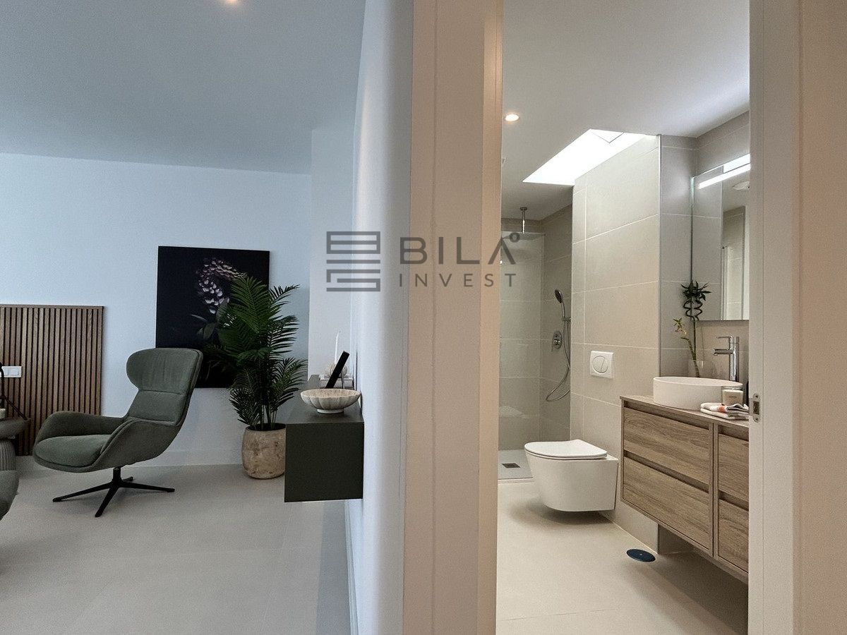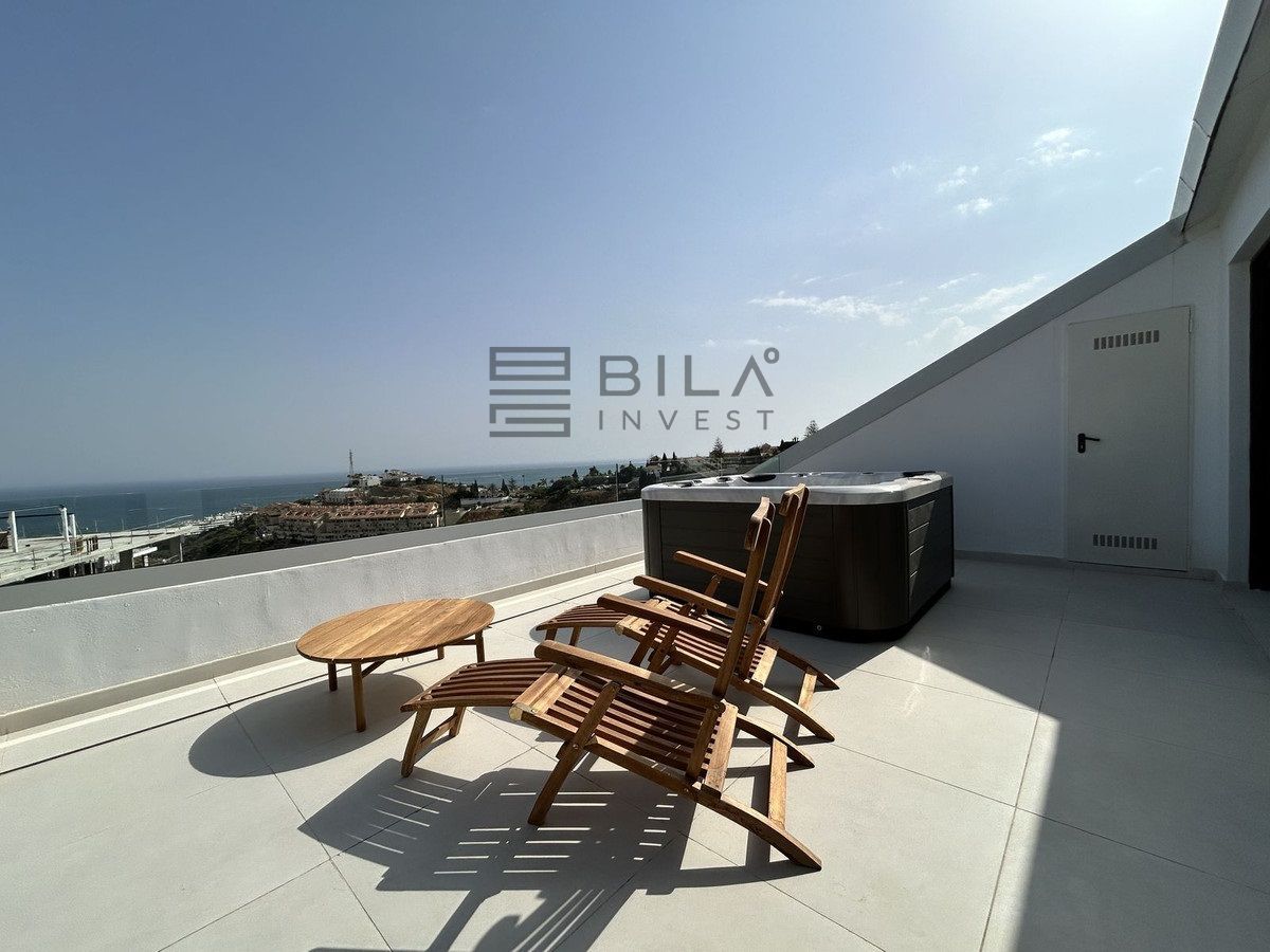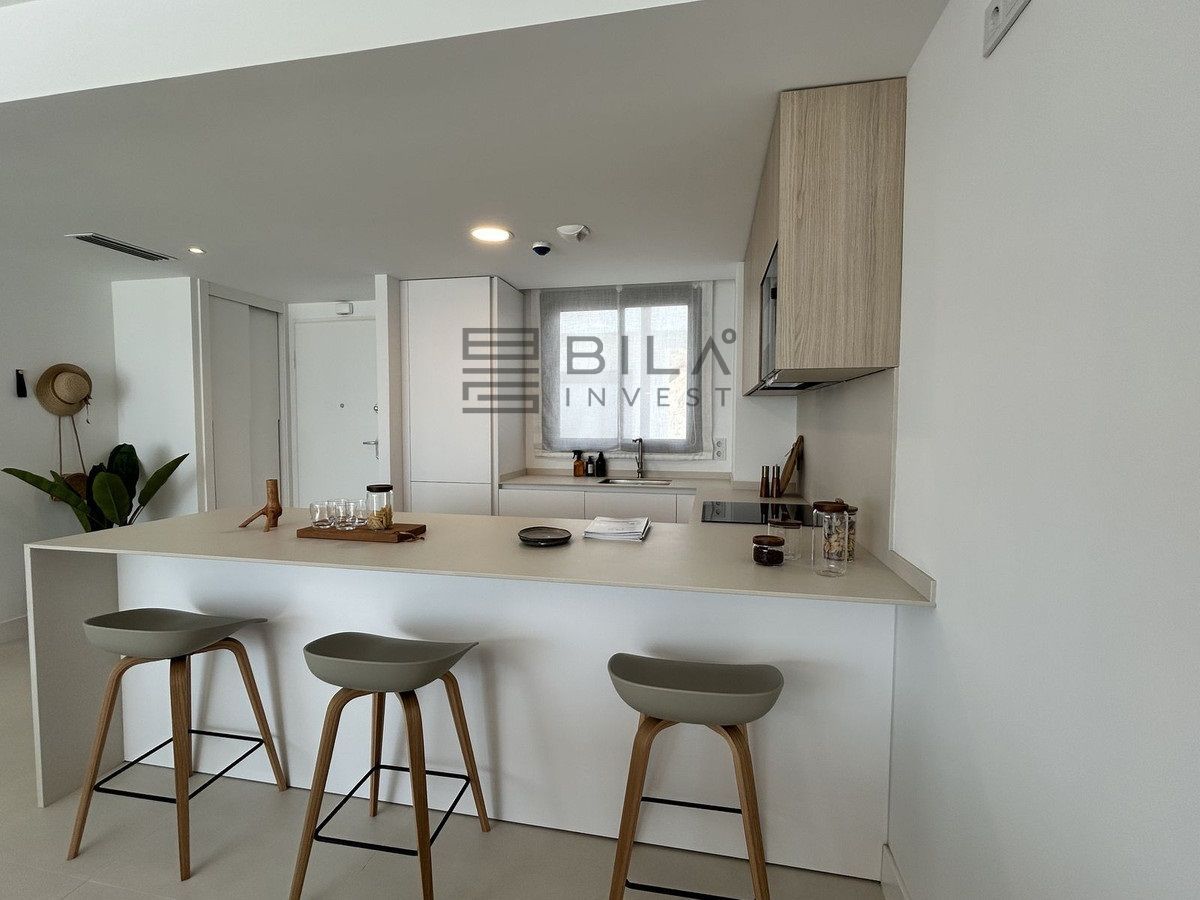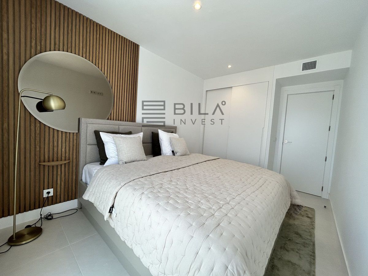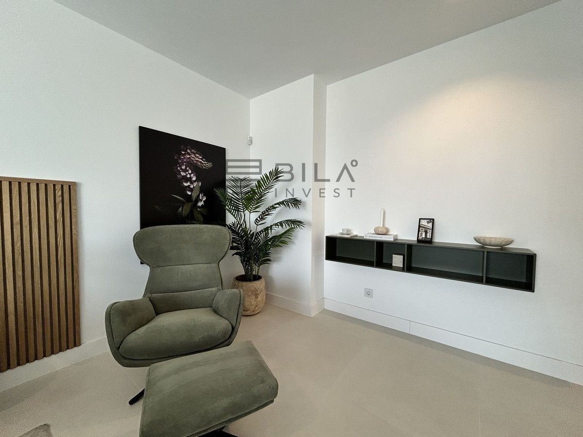 This exclusive, brand-new penthouse with three bedrooms and a large south-facing terrace with sea and mountain views is fully furnished with high-end designer pieces by Ikonia Ilusion&Arte, which stands out for its thoughtful lighting and maximum sense of spaciousness.