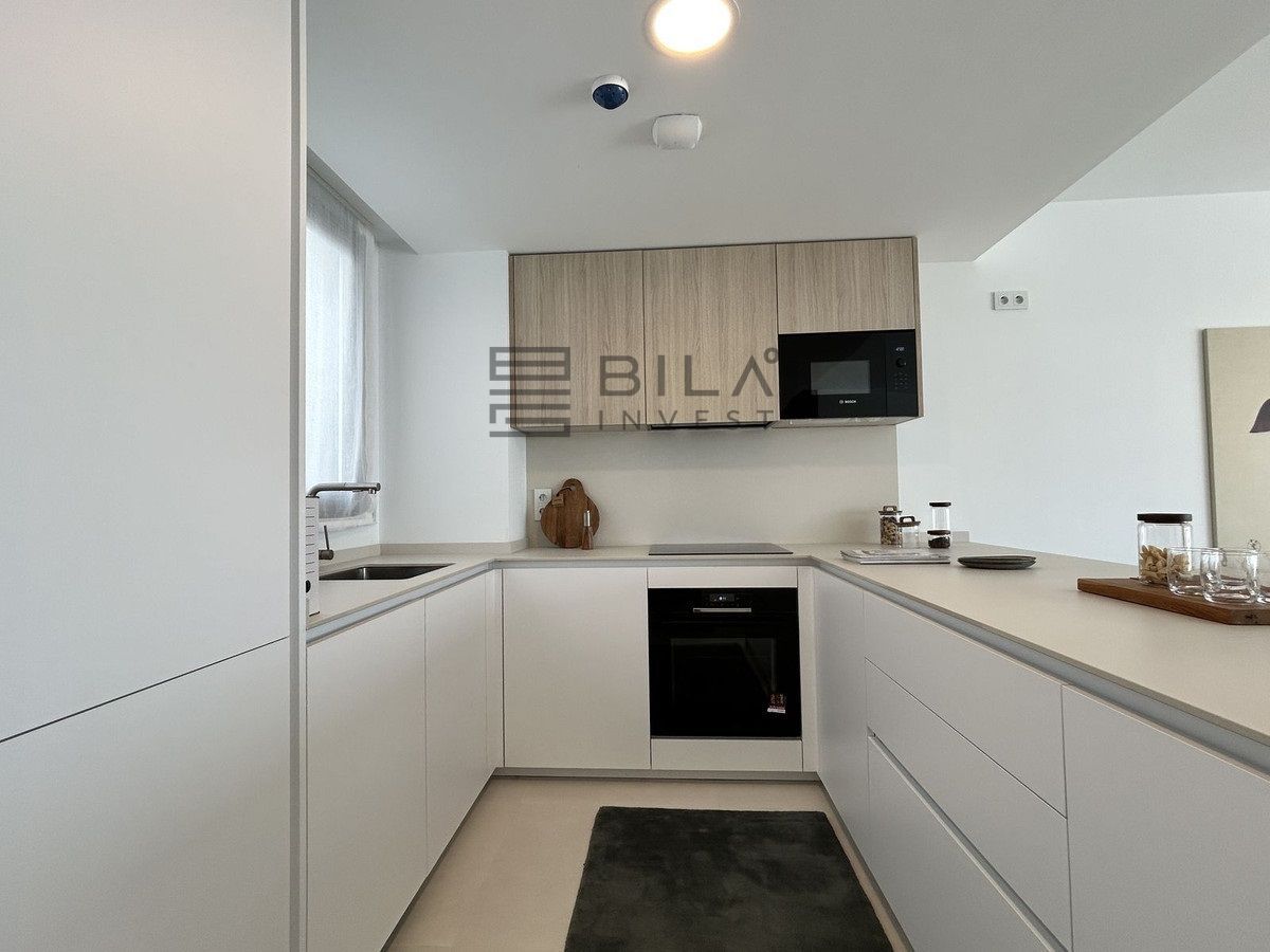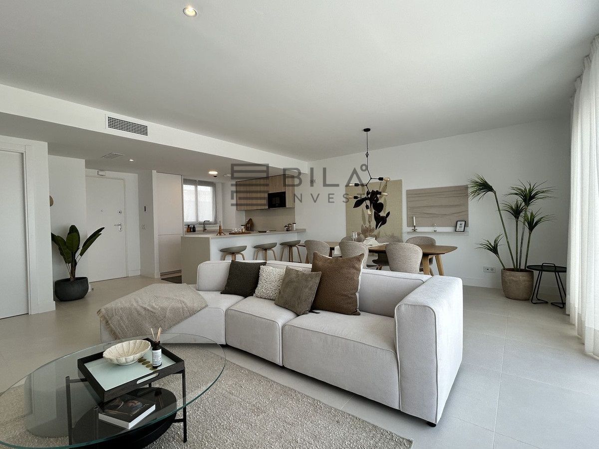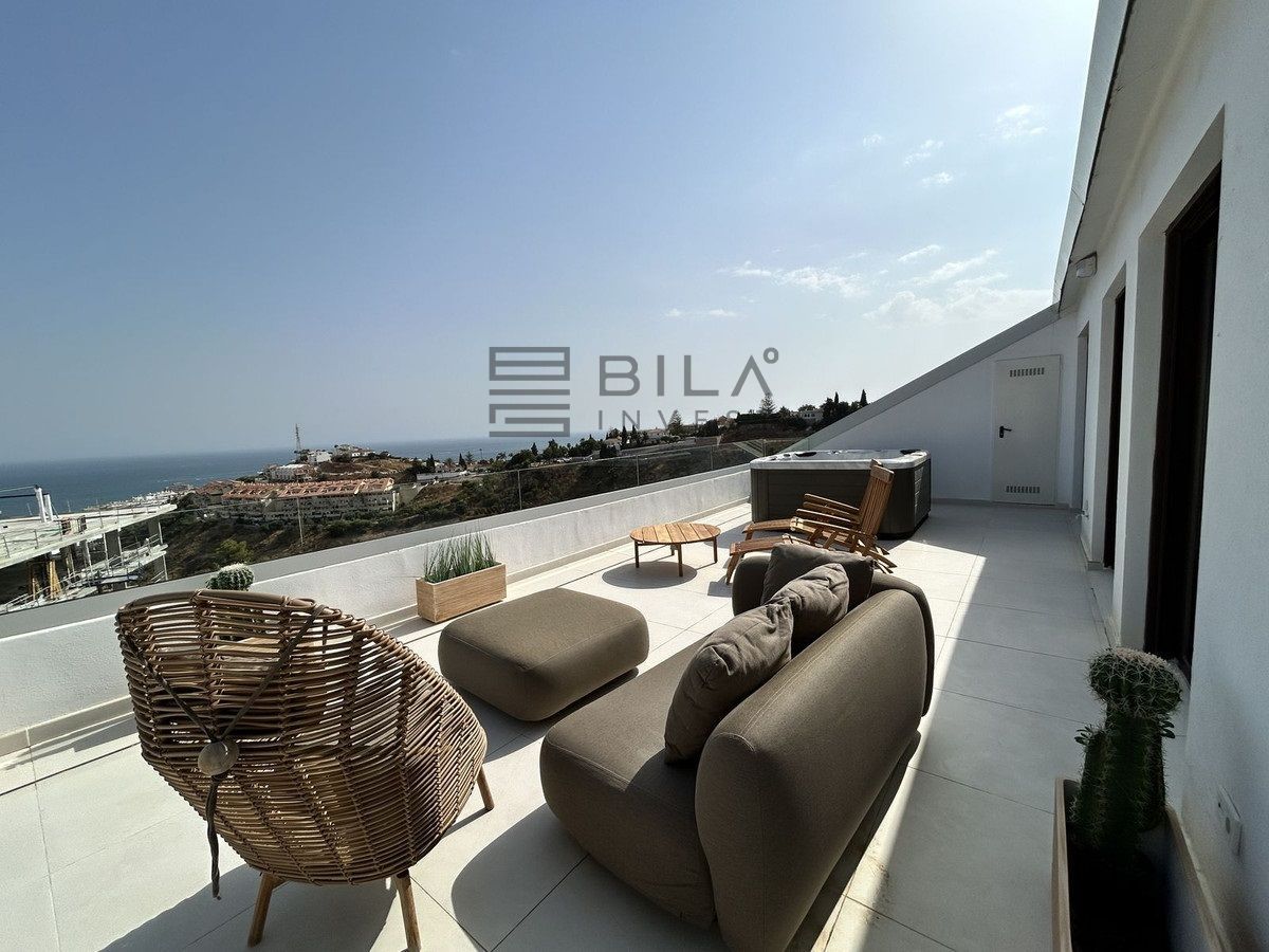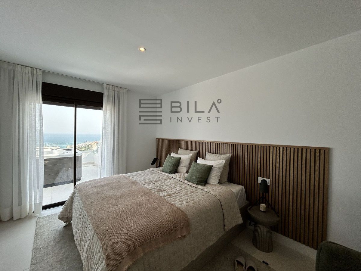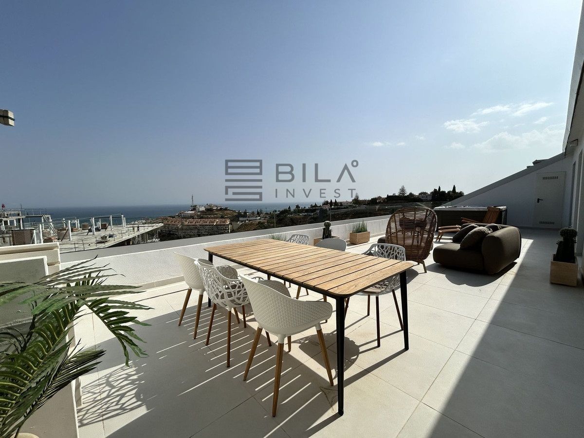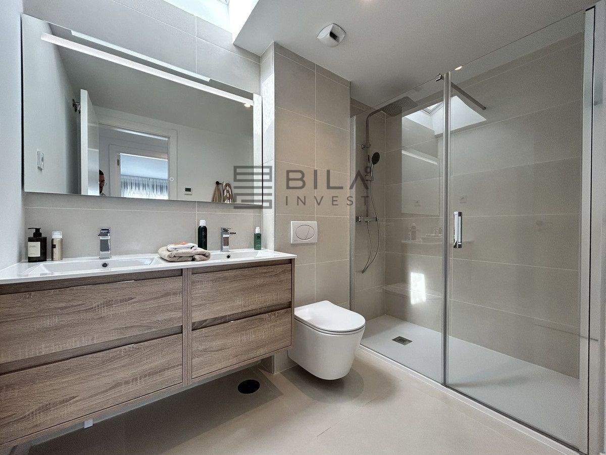 This exclusive, brand-new penthouse with three bedrooms and a large south-facing terrace with sea and mountain views is fully furnished with high-end designer pieces by Ikonia Ilusion&Arte, which stands out for its thoughtful lighting and maximum sense of spaciousness.