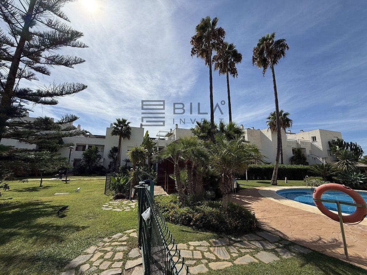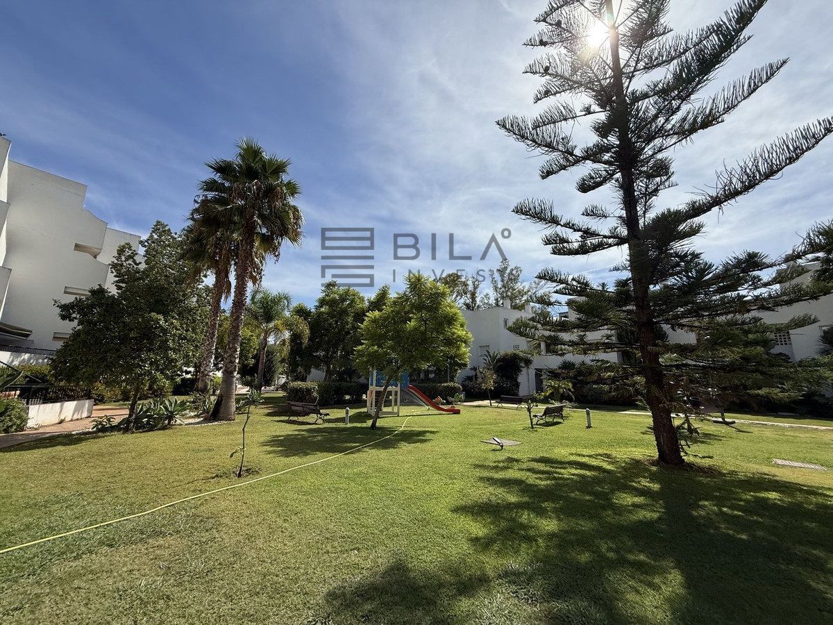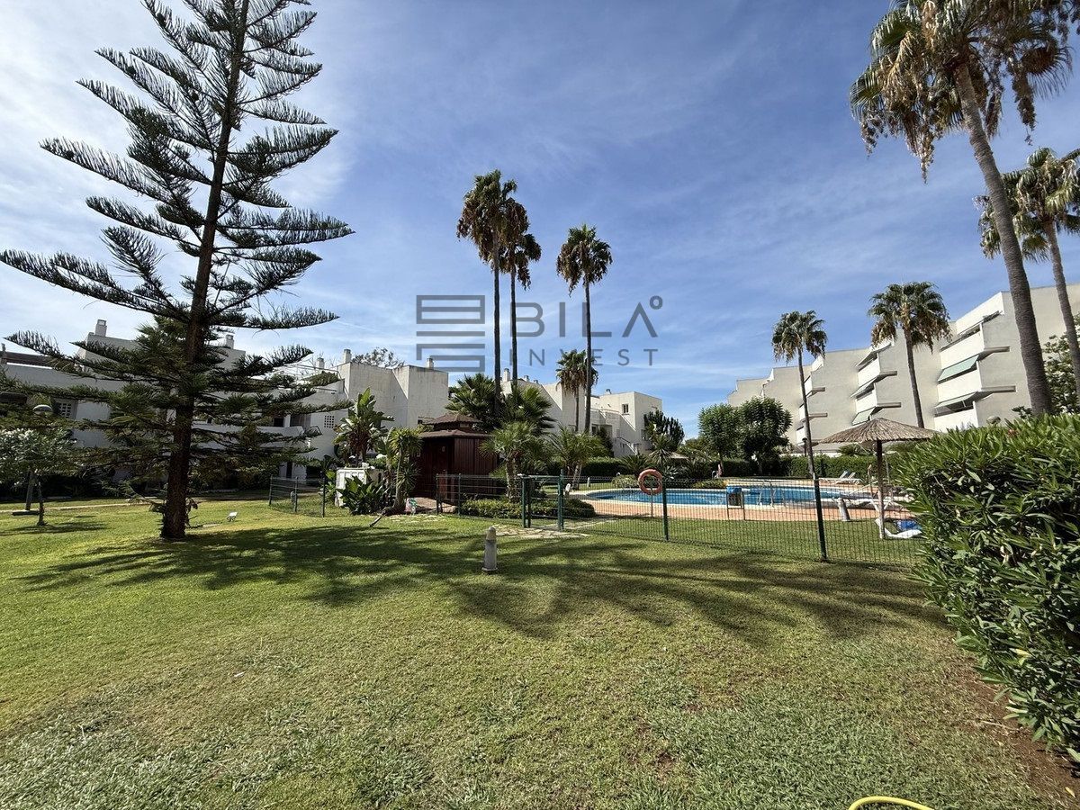 Apartment with 100m2 of garden for sale in Edif. Sabinas, Carib Playa, Marbella, with 112m2, 2 bedrooms and 2 bathrooms, swimming pool, garage, storage room, elevator and air conditioning.