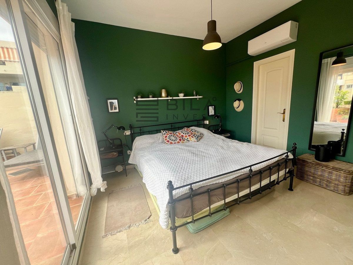 Apartment with 100m2 of garden for sale in Edif. Sabinas, Carib Playa, Marbella, with 112m2, 2 bedrooms and 2 bathrooms, swimming pool, garage, storage room, elevator and air conditioning.