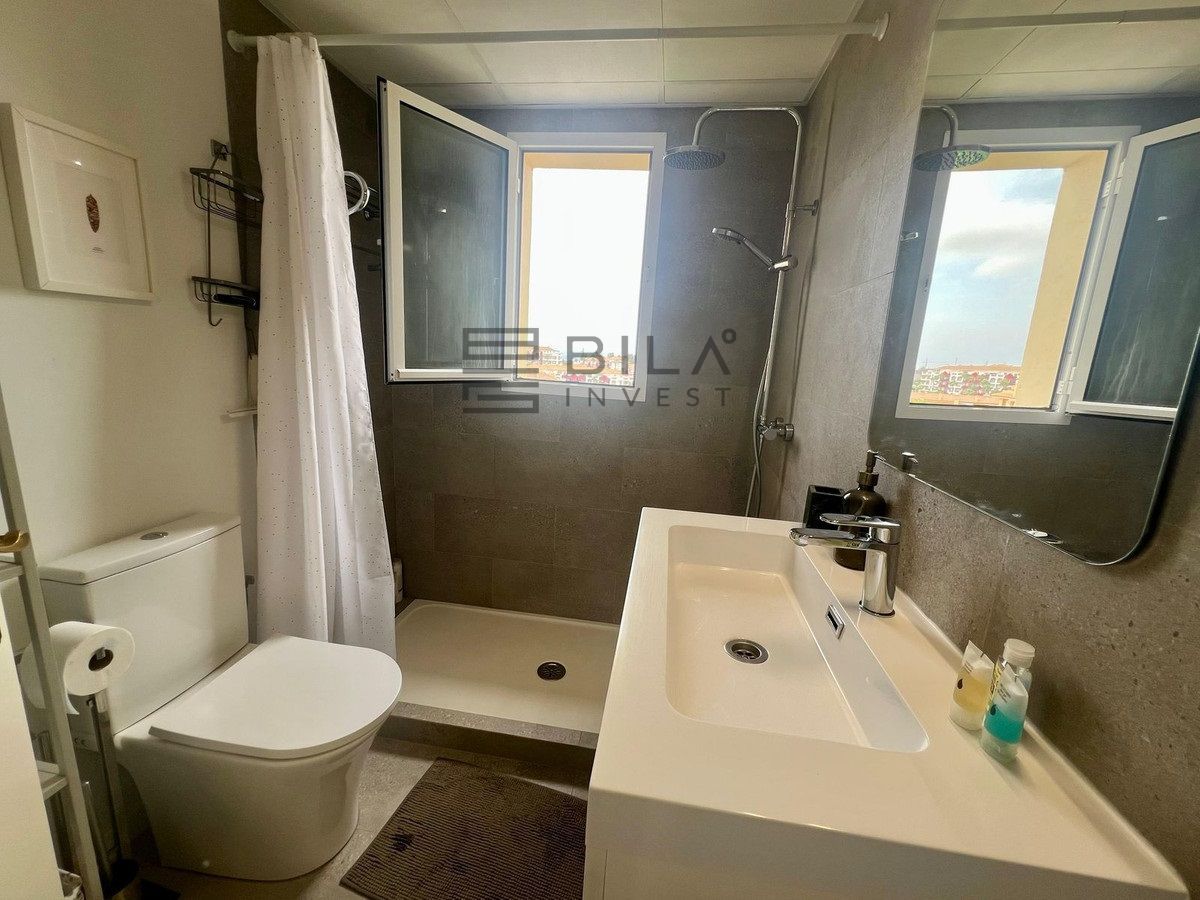 The highlight of this duplex is the exceptionally large wrap-around terrace on the upper level, perfect for entertaining or simply soaking in the stunning views of the sea, mountains, and golf course. With 106 m² constructed and 90 m² usable space, this home offers ample room for relaxation.