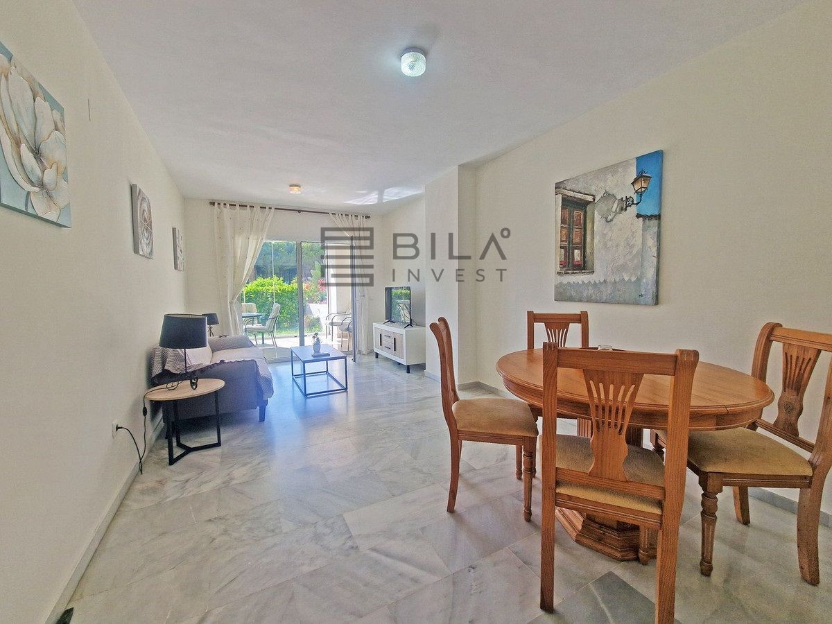 Ground floor apartment with garden for sale on the beachfront, in the Mi Capricho development, Calahonda, Mijas Costa. This property is located in a prime area of the Costa del Sol, with direct access to the beach and open views of the Mediterranean. Spread over 83.00 m2 of built area, maximizing every square meter, it offers a comfortable option for living or investing. On the ground floor, the private garden provides a perfect outdoor space for enjoying the local climate and for al fresco gatherings. This property is an attractive option for those seeking proximity to the sea without sacrificing services and amenities. The interior combines functionality and comfort. It has 2 bedrooms and 2 bathrooms, designed to optimize the layout and privacy. The kitchen is furnished and the entire apartment is delivered furnished, ready to move into. Built-in wardrobes maximize storage space, keeping the rooms tidy and clean. Air conditioning ensures pleasant climate control year-round, especially during the Costa del Sol's warm summers. Overall, the home is designed for comfortable and hassle-free daily use. The common areas add value to the property: a communal pool, green areas, and access surveillance ensure privacy and tranquility. A garage is also available, a key advantage in an area with a high demand for parking spaces. This facilitates daily management and adds convenience for residents and visitors. The combination of pool and green areas reinforces the appeal for families and individuals seeking a relaxed lifestyle with services within easy reach. All this within a well-maintained environment and in an easily accessible location. The location is an added value: just a stone's throw from the beach, with shops, restaurants, and services in the immediate vicinity. Calahonda and the Mijas Costa area offer a varied range of leisure activities, whose balance between beach and nature can be appreciated on every walk. The Mi Capricho development provides a residential feel, with constant security and maintenance. This property, offered by Bila Invest, presents itself as a solid option for both permanent use and a vacation rental investment. If you're looking for a home with growth potential and a stable base in a high-demand area, this is a perfect candidate. Come see it and find out if it fits your needs for housing, investment, or a quiet retreat by the sea.