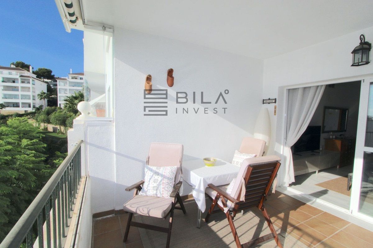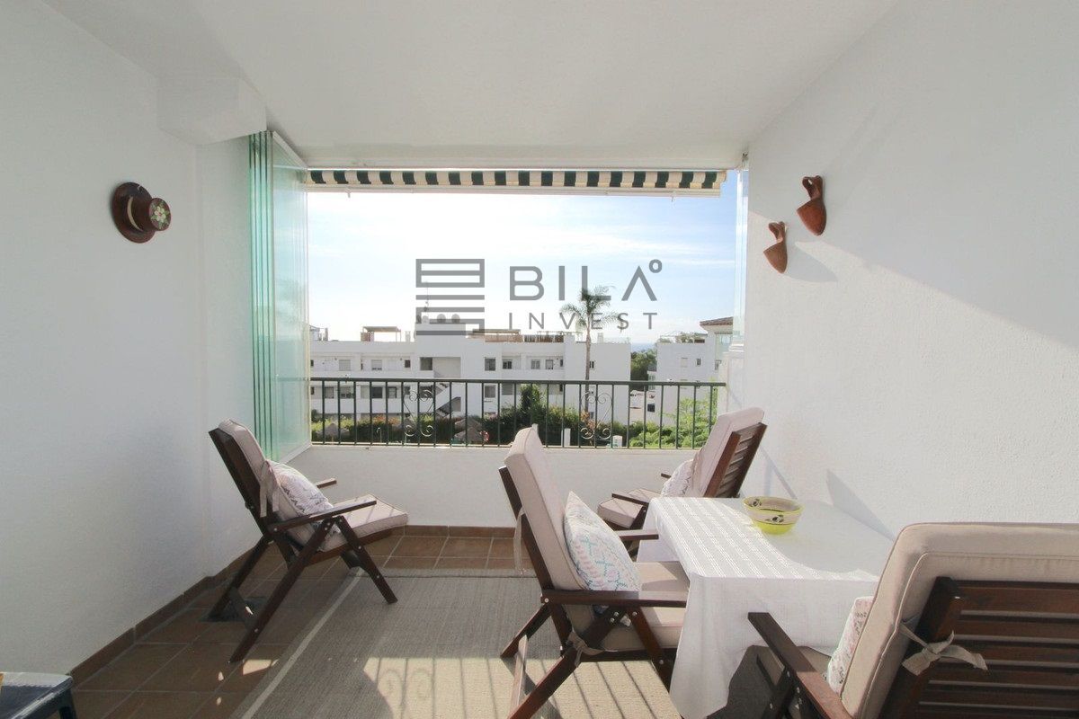 A good size living and dining room with access to a 12m2 terrace which got updated with glass curtains from where you have sea, pool and panoramic views.