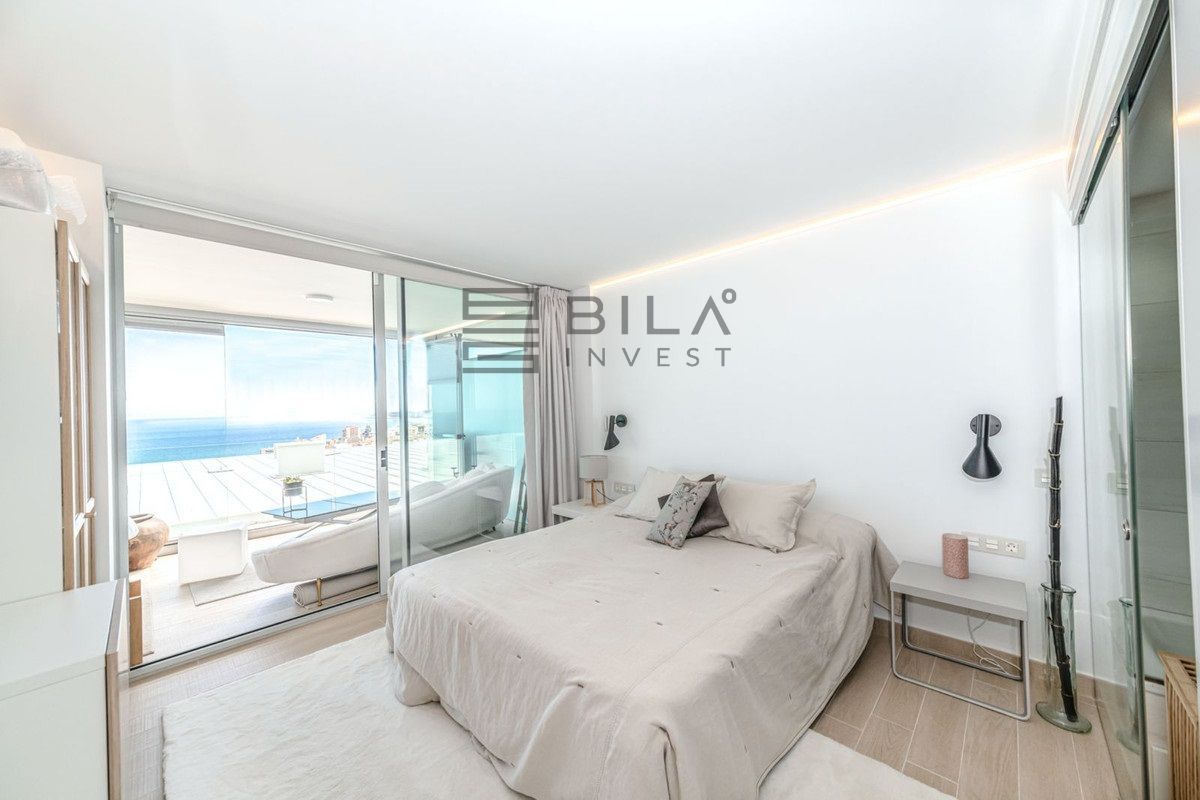 Discover the Mediterranean lifestyle in this magnificent 3-bedroom, 2-bathroom apartment, located in the exclusive area of El Higuerón. This property offers exceptional panoramic views of the Mediterranean Sea that you can enjoy from its spacious 32 m² terrace. Furthermore, the sea view will always remain unobstructed, as no construction is permitted in front, guaranteeing a magnificent and permanent perspective.