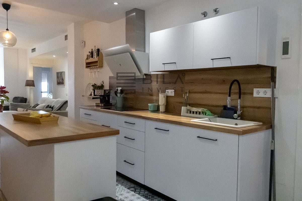El diseño interior prioriza la funcionalidad, con salones amplios y estancias bien aprovechadas que permiten un uso versátil. La cocina, completamente equipada, facilita la convivencia diaria y la posibilidad de preparar comidas rápidas o chefs itinerantes sin complicaciones. Las tres habitaciones ofrecen amplitud suficiente para distintas configuraciones: dormitorio principal con baño privado o zona de estudio, dormitorios secundarios para familiares o invitados. Los dos baños están modernizados y permiten distribución cómoda para la familia o para visitas puntuales.