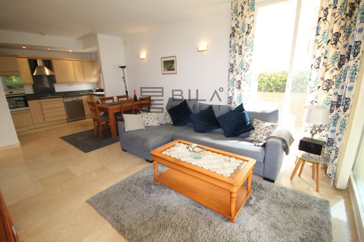 La propiedad consta de un amplio salón-comedor, una cocina americana totalmente equipada, 2 amplios dormitorios dobles, 2 baños (1 en suite) y una gran terraza de 32 m con acceso a los jardines comunitarios.
