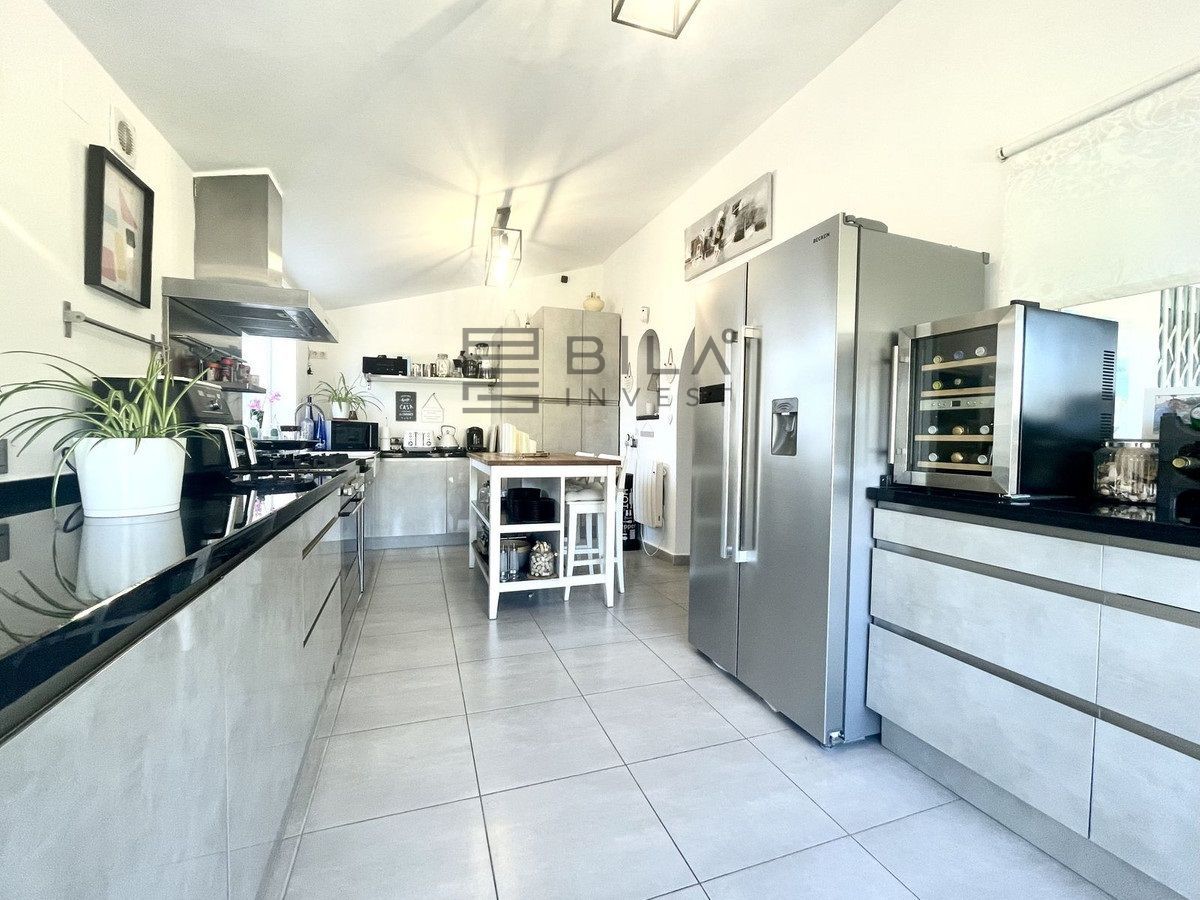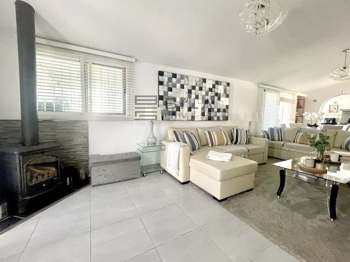 La propiedad cuenta con un camino de entrada privado y cerrado, un sistema de intercomunicación y se accede a ella desde el nivel de la carretera a través de una serie de escalones y terrazas exteriores, con entradas en ambos extremos de la villa. La entrada principal da paso a una amplia sala de estar y comedor, mientras que una entrada secundaria proporciona acceso directo a la cocina. La sala de estar cuenta con una llamativa pared multimedia y dos chimeneas, que crean un ambiente cálido y sofisticado. Esta zona fluye a la perfección hacia una cocina moderna y totalmente equipada, ideal tanto para la vida cotidiana como para el entretenimiento. Desde la cocina se accede a una amplia terraza para desayunar y hacer barbacoas, un espacio privado con pintorescas vistas a la piscina y al paisaje montañoso circundante.
