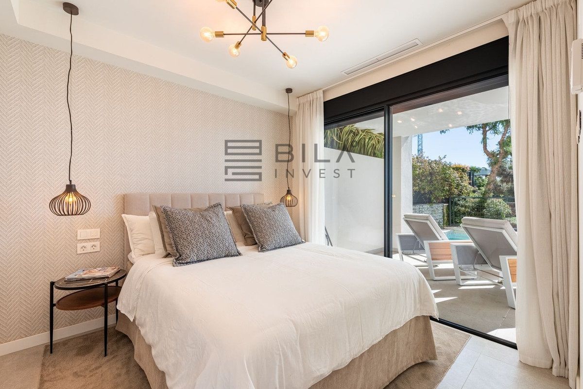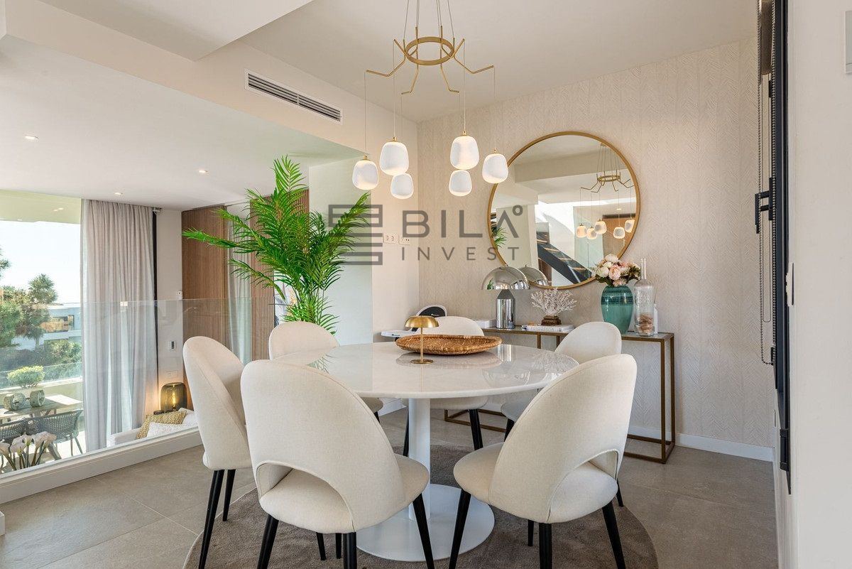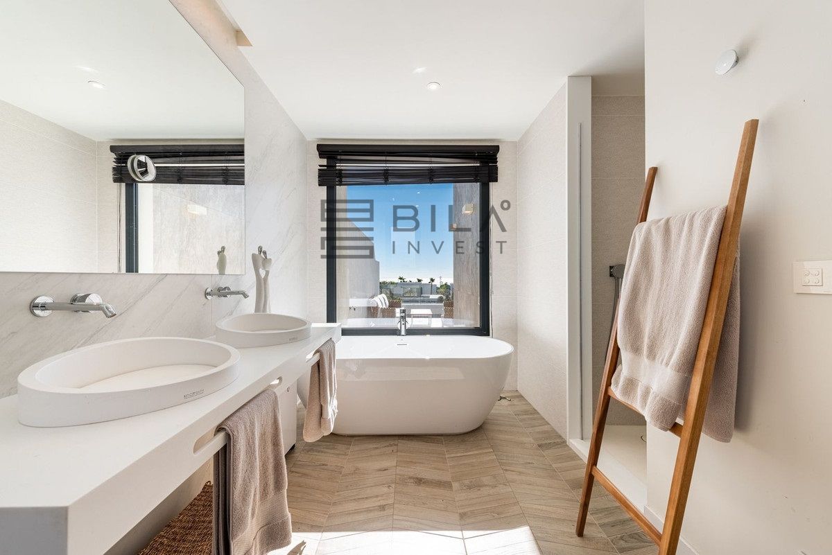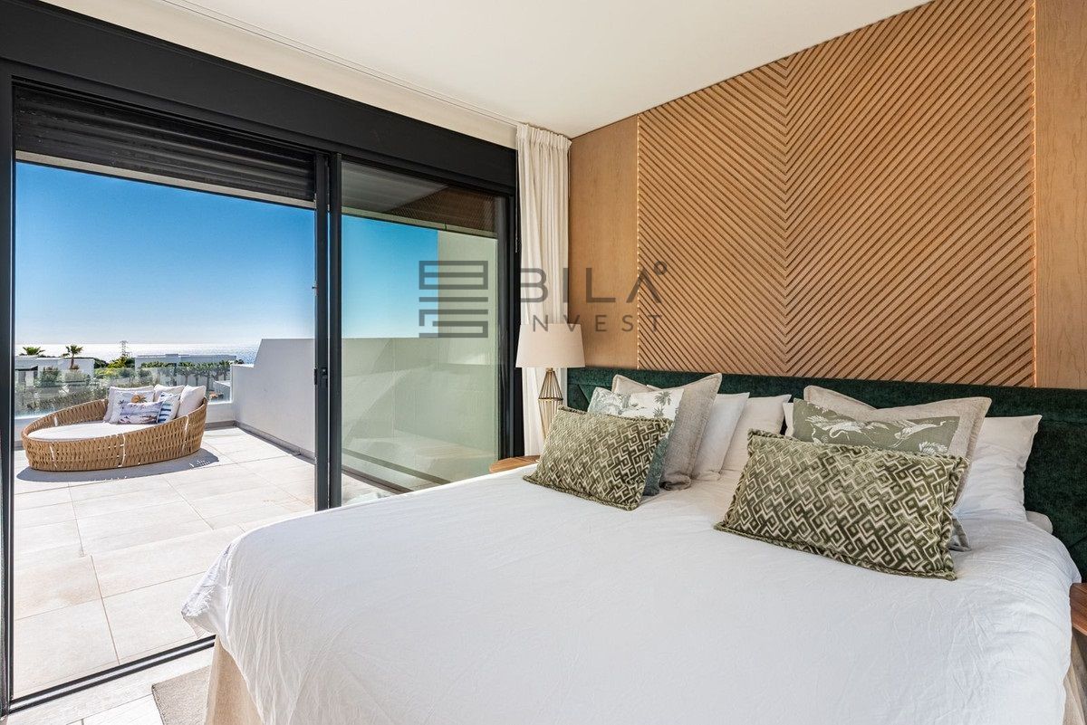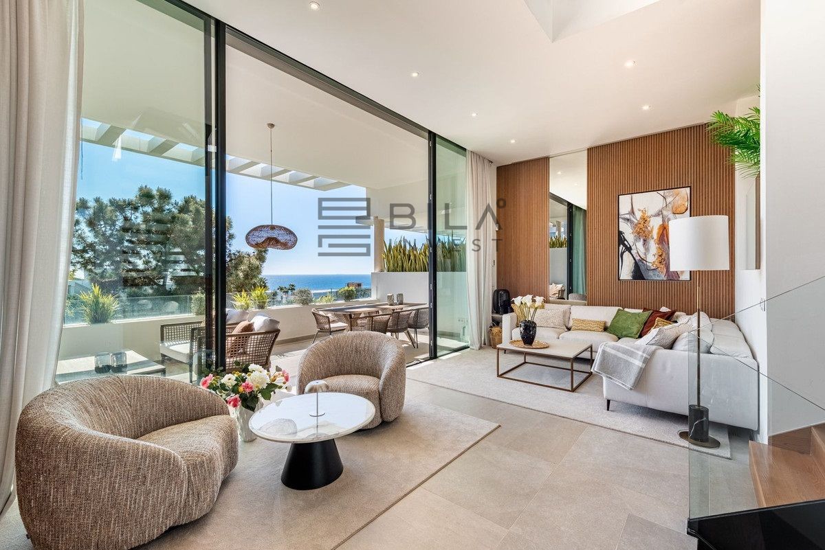 La vivienda cuenta con 3 dormitorios, todos con baño en suite, un aseo para invitados y un práctico trastero/lavadero. El salón y la cocina de concepto abierto se abren directamente a una maravillosa terraza, mientras que los grandes ventanales de suelo a techo llenan la casa de luz natural y crean una sensación de amplitud y lujo.