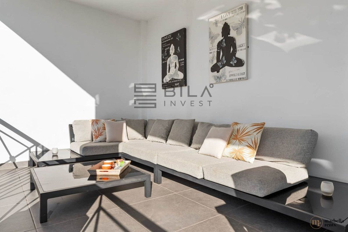 Su ubicación privilegiada ofrece lo mejor de la Costa del Sol: paz absoluta junto al campo de golf, vistas panorámicas al mar y a la montaña, y la cercanía de las famosas dunas y playa de Cabopino, a tan solo 5 minutos.