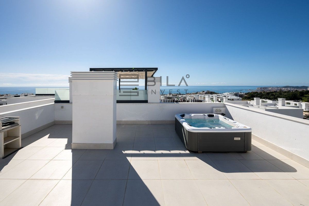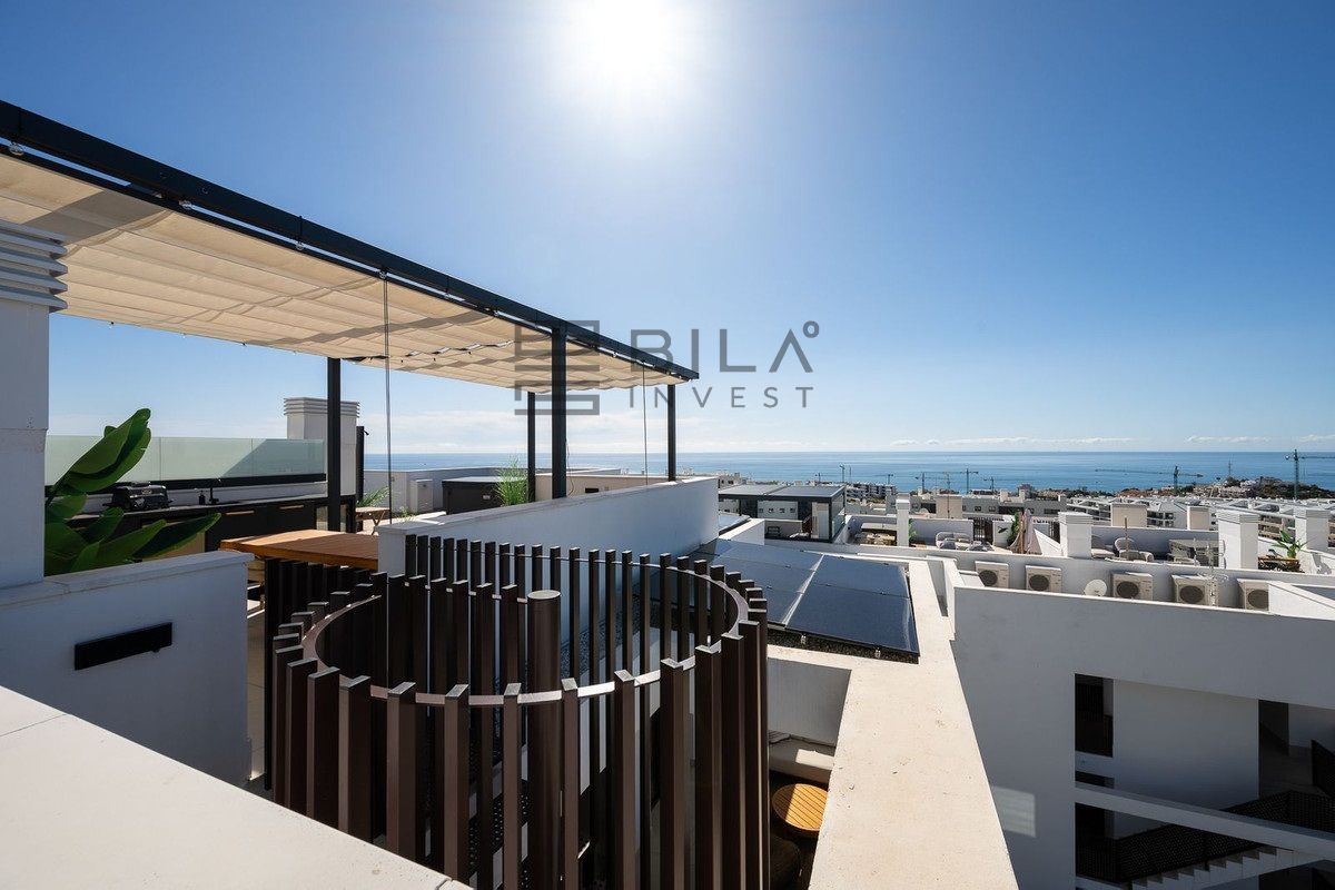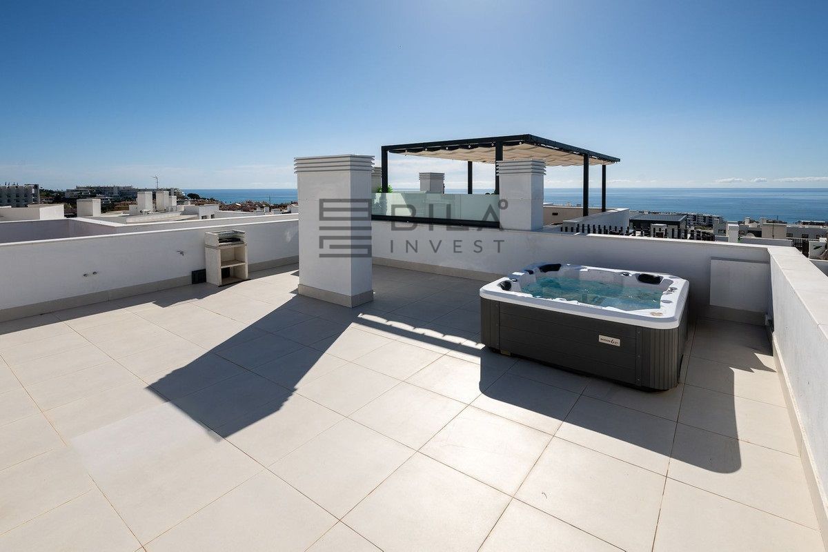 Disfrute de la elegancia de este exclusivo ático de 2 dormitorios, donde el lujo se encuentra con un diseño innovador situado en la pintoresca Costa del Sol, con impresionantes vistas al mar. El solárium cuenta con su propio jacuzzi privado, proporcionando un oasis de relajación mientras se remoja en vistas panorámicas del Mediterráneo. Los interiores son luminosos y contemporáneos, diseñados con cocinas de planta abierta y espacios habitables, resaltados por impresionantes ventanas de suelo a techo, además de dos espacios de estacionamiento dedicados y un trastero para mayor comodidad.