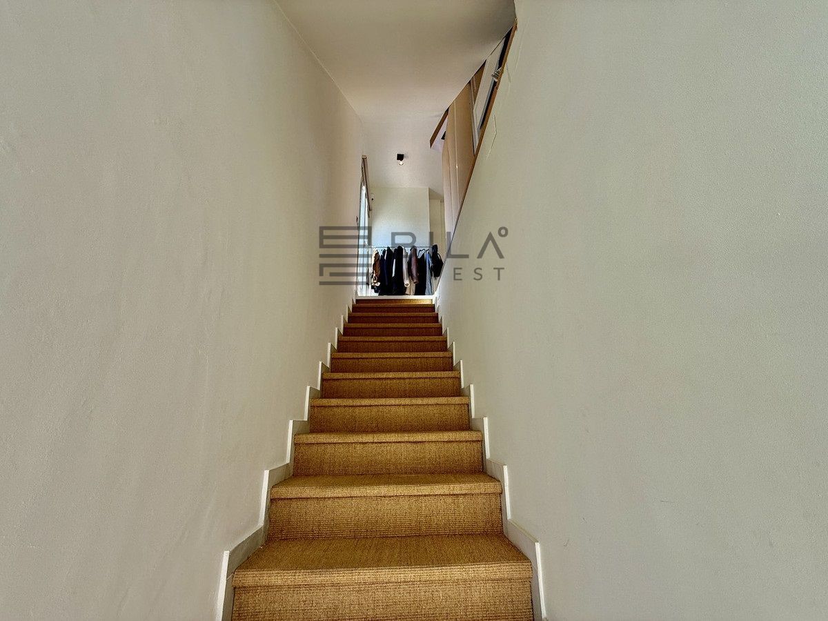 La propiedad transmite una gran sensación de independencia nada más entrar en el patio, donde se encuentra la puerta principal. Se accede a la zona de estar, que tiene varios niveles y cuenta con vigas vistas en el luminoso comedor, desde donde se divisa una terraza muy espaciosa orientada al sur. En este nivel hay una cocina en forma de galera, junto con un dormitorio y un cuarto de baño. En la planta superior hay un segundo dormitorio y un cuarto de baño, que es un espacio muy amplio, además de acceso a una terraza solárium privada de gran tamaño con impresionantes vistas panorámicas a la montaña y al mar, ideal para tomar el sol, relajarse o crear un espacio de descanso.