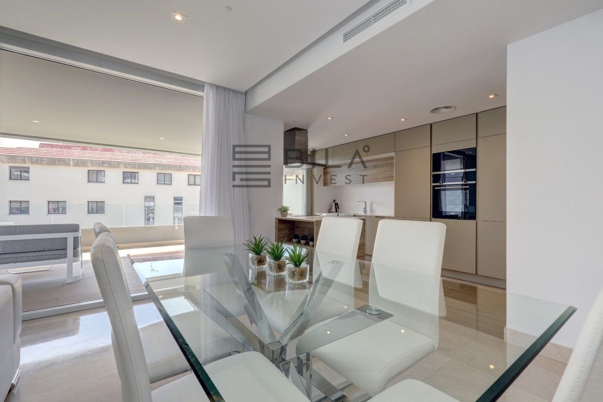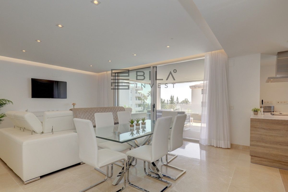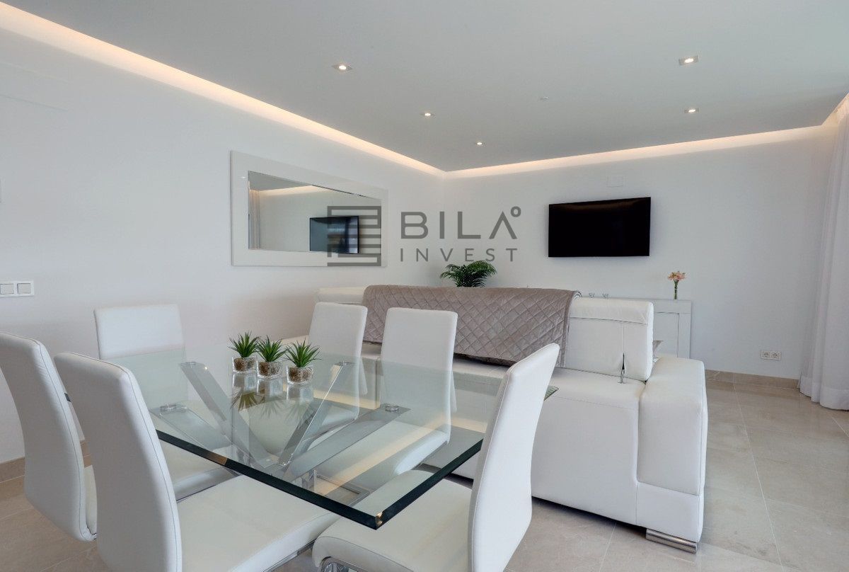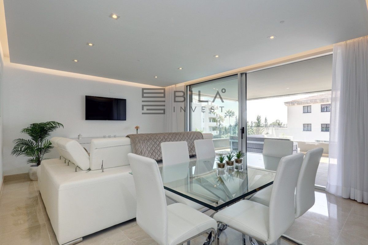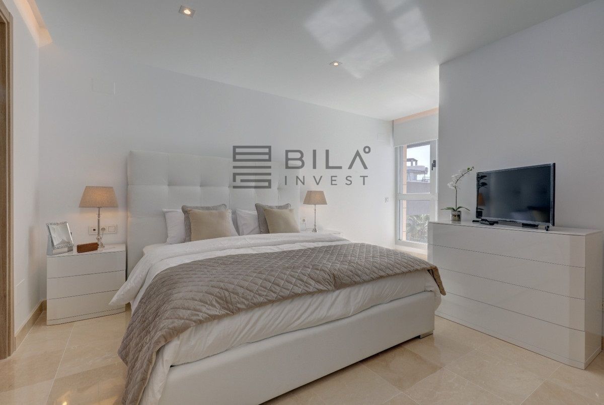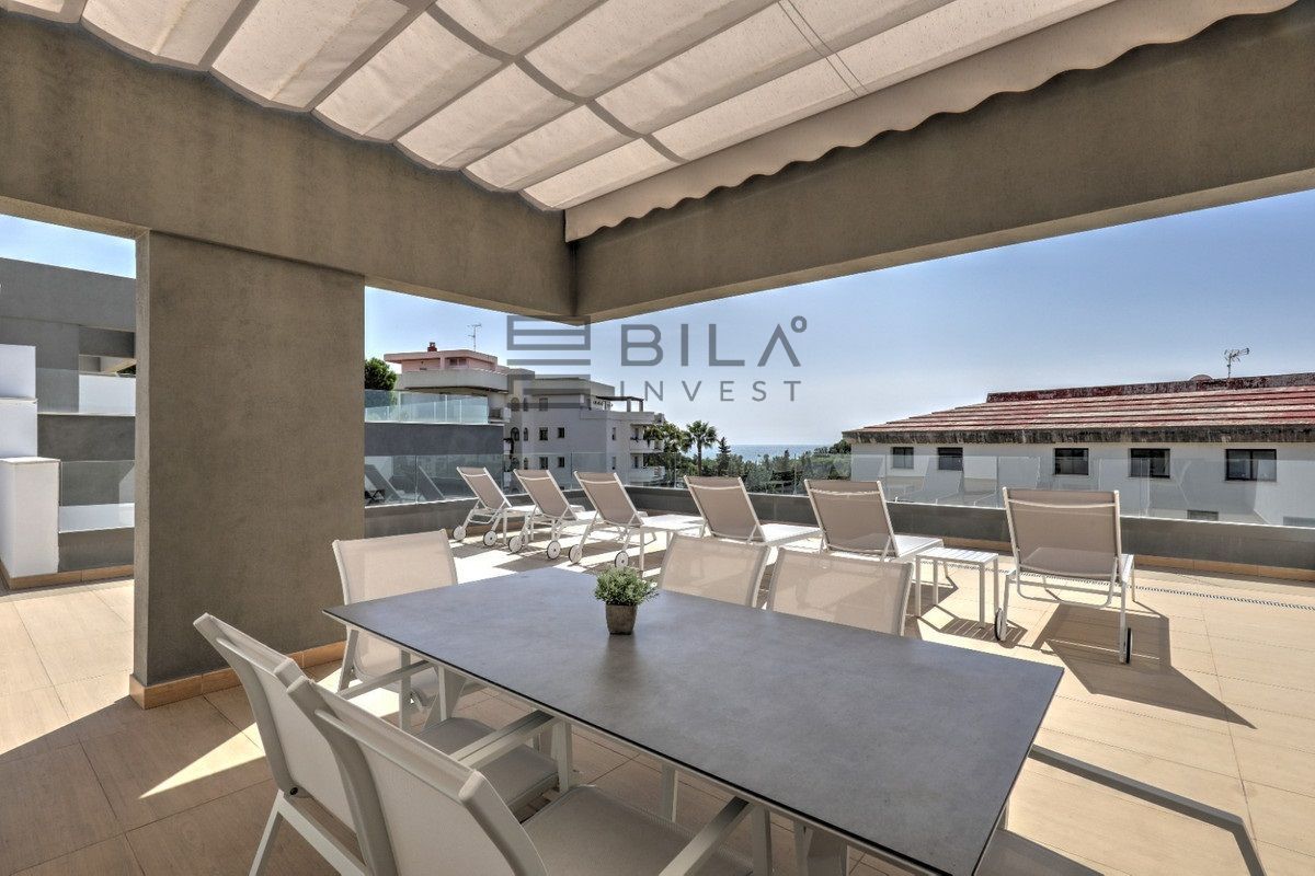 Un hermoso ático de 3 dormitorios situado a poca distancia de Puerto Banús disponible para alquiler vacacional. Este ático de 3 dormitorios y 2 baños con una gran terraza en la azotea es un diseño moderno con muebles de alta gama. Sala de estar y cocina de planta abierta con lavadero, amplia terraza desde la sala de estar con mesa de comedor y sofás. 3 amplios dormitorios dobles con el principal disfrutando de un gran baño en suite. La azotea cuenta con 6 tumbonas, mesa de comedor y zona de barbacoa. Estupendas vistas al mar y plaza de garaje privada incluida. A 10 minutos a pie tienes todo lo que necesitas con restaurantes, tiendas y el mundialmente famoso Puerto Banús.