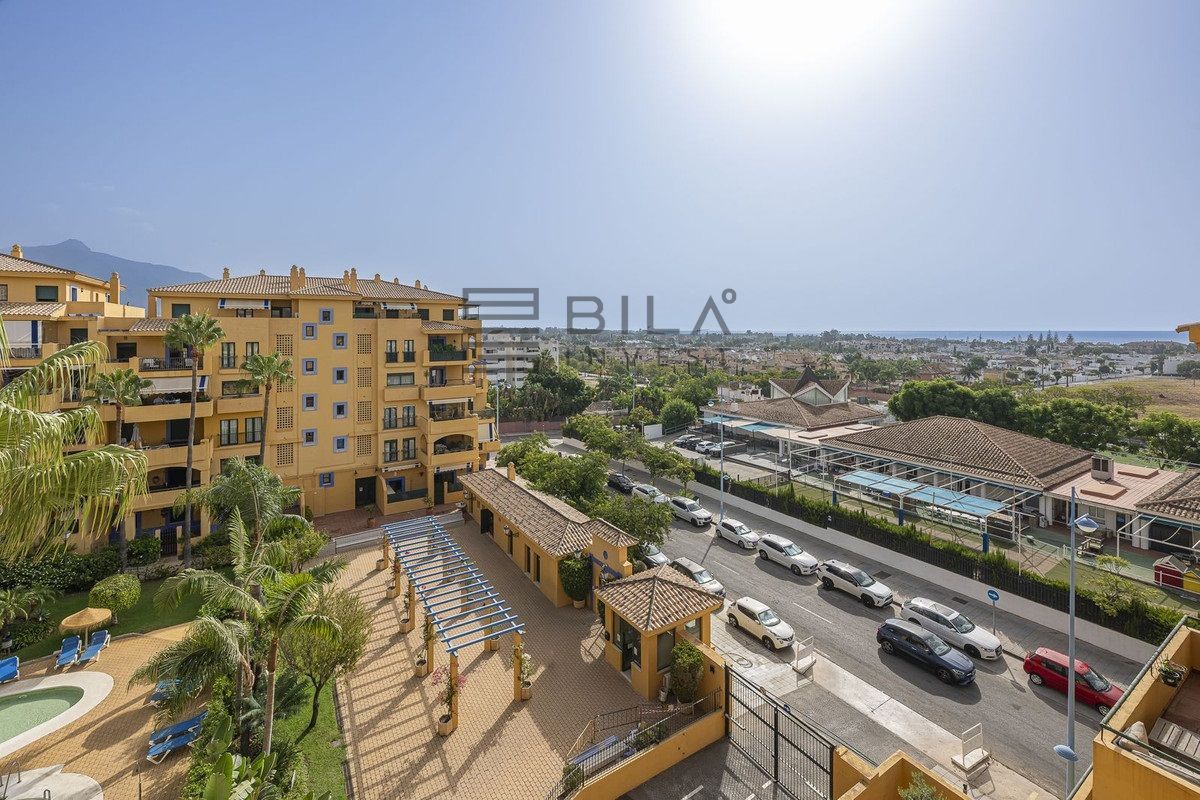 Se ofrece en venta este amplio piso de 129 m² interiores más terraza, ubicado en la Avenida Santiago de Compostela 2, San Pedro de Alcántara (Marbella).