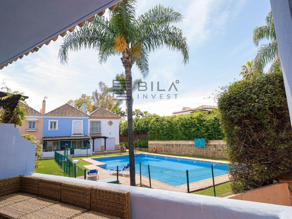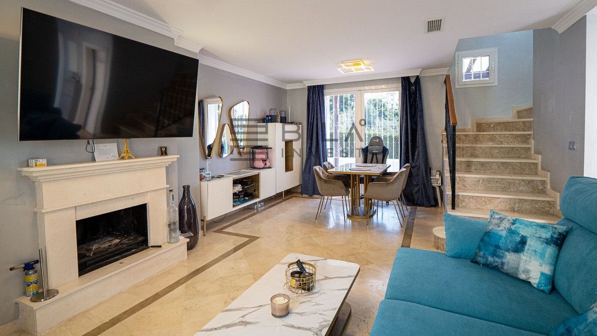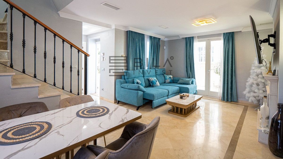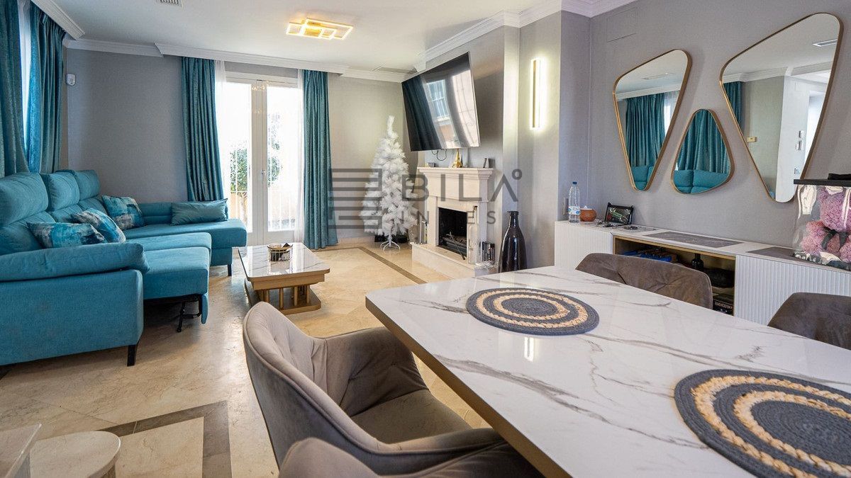 En venta se encuentra una impresionante casa adosada completamente renovada, situada junto al tranquilo Aloha Lake, en la prestigiosa zona de Nueva Andalucía, a solo 10 minutos en coche del famoso Puerto Banús.