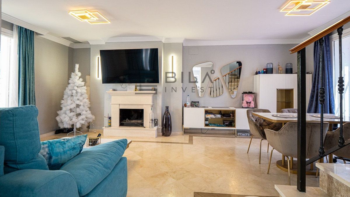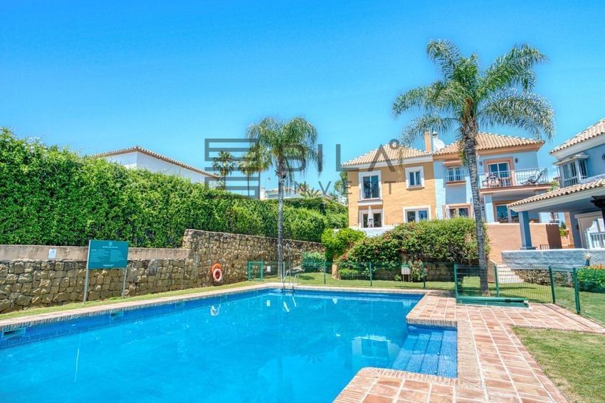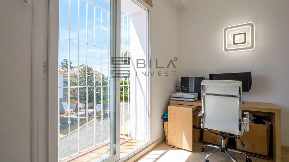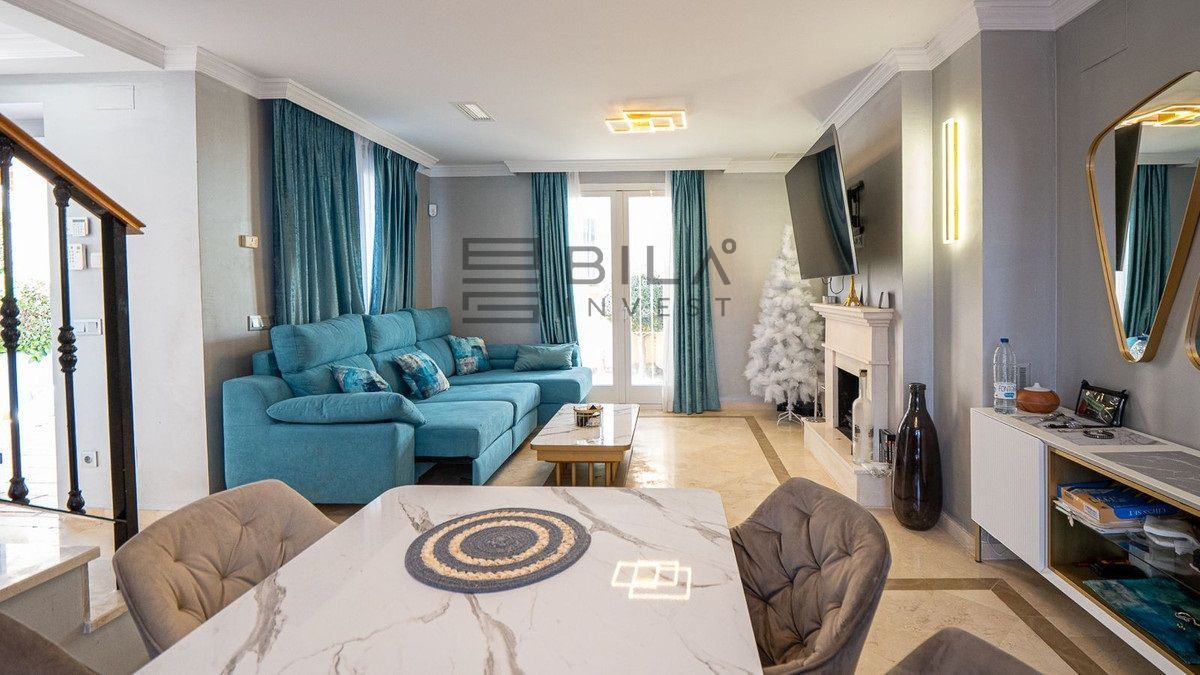 En venta se encuentra una impresionante casa adosada completamente renovada, situada junto al tranquilo Aloha Lake, en la prestigiosa zona de Nueva Andalucía, a solo 10 minutos en coche del famoso Puerto Banús.