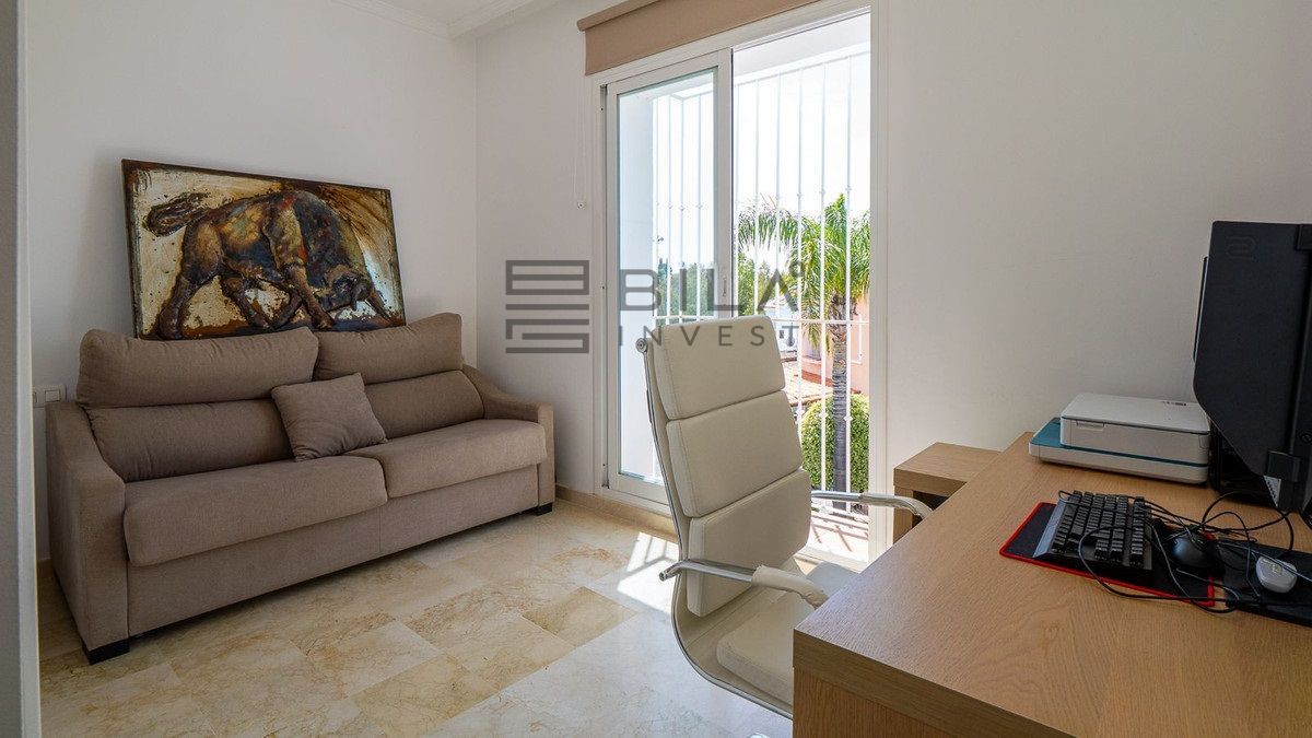 Ubicada dentro de una exclusiva comunidad cerrada de solo 20 viviendas, la propiedad ofrece privacidad, seguridad y un alto nivel de exclusividad. La comunidad está excepcionalmente bien cuidada y rodeada de jardines paisajísticos, creando un ambiente tranquilo y relajante. Los residentes tienen acceso a tres piscinas, lo que proporciona múltiples espacios para disfrutar del clima mediterráneo.
