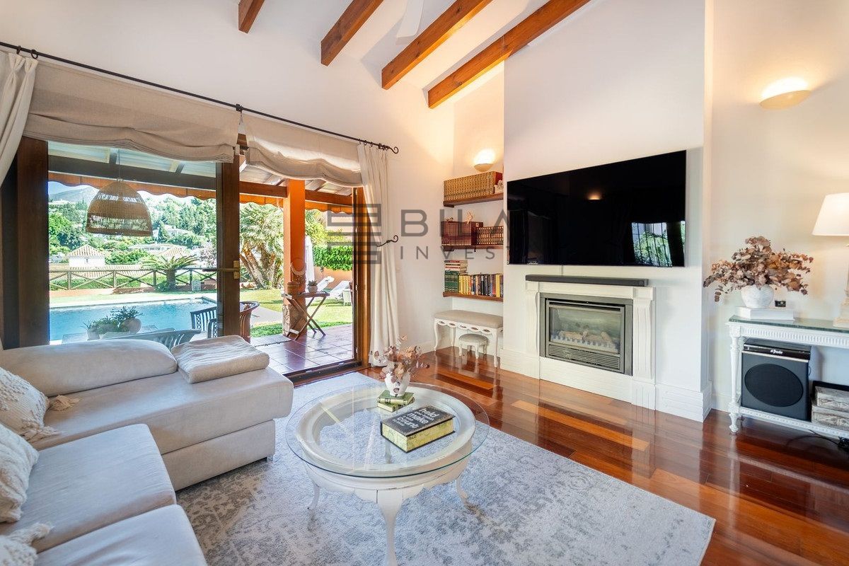 Desde el primer momento, la vivienda transmite amplitud y bienestar. El salón, amplio y acogedor, se abre directamente a la terraza, el jardín y la piscina privada, creando un espacio perfecto para disfrutar del clima de la Costa del Sol durante todo el año, con agradables vistas a la montaña.
