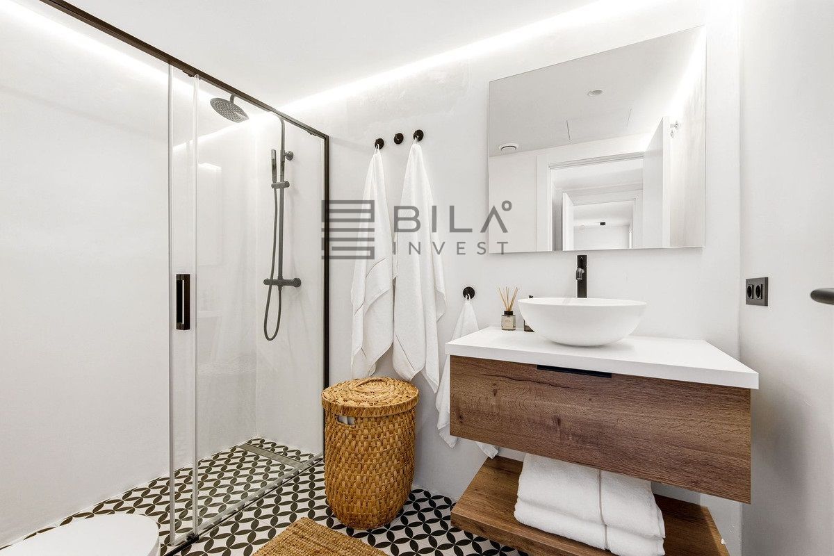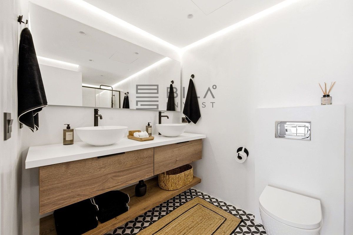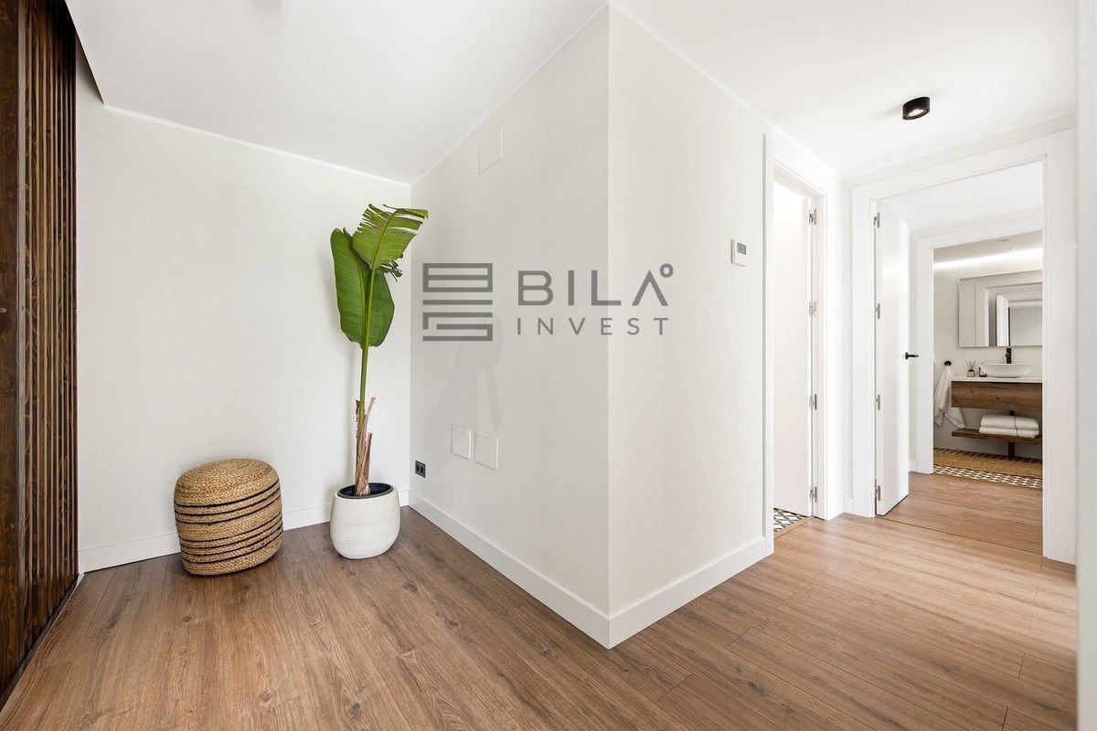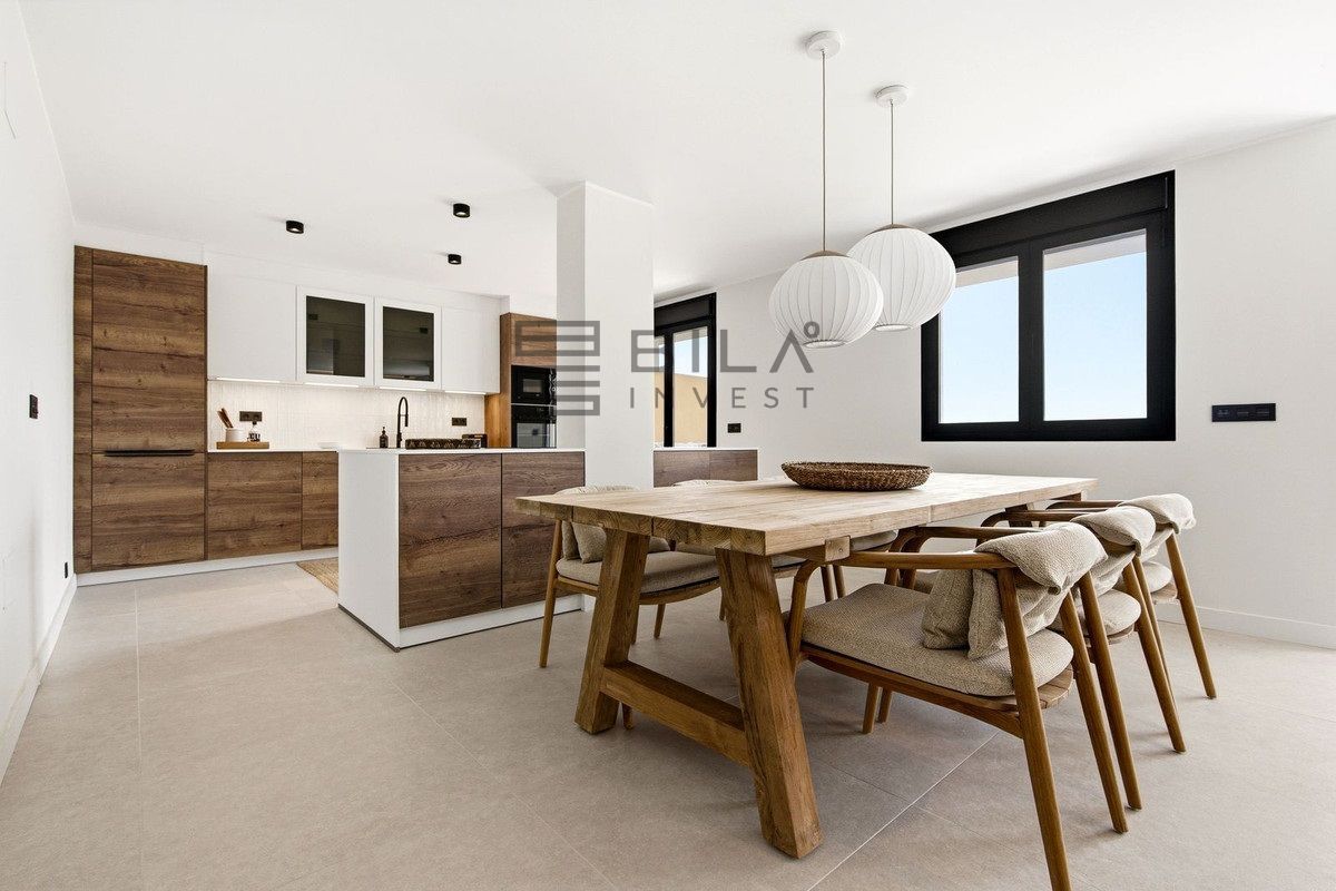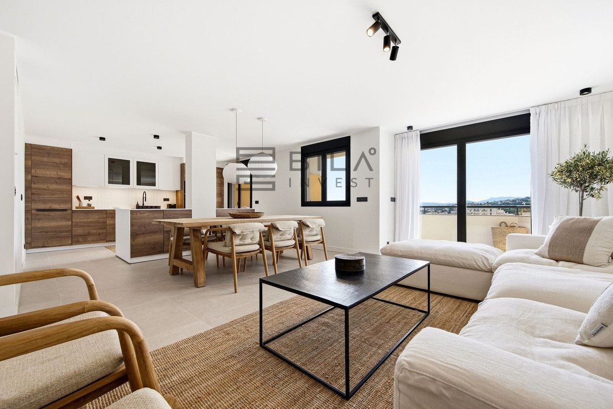 Elegante entrada que da paso a un luminoso espacio open concept con salón, comedor y cocina. Desde aquí se accede a dos terrazas, ideales para disfrutar del clima mediterráneo. También cuenta con aseo de invitados y zona de lavandería.