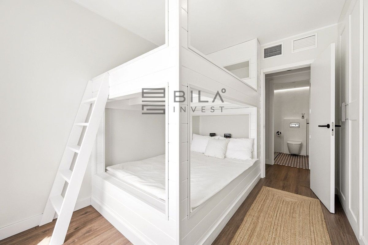* Segundo dormitorio con literas integradas (ancho de matrimonio) y armario - perfecto para niños o invitados - con acceso a la terraza.