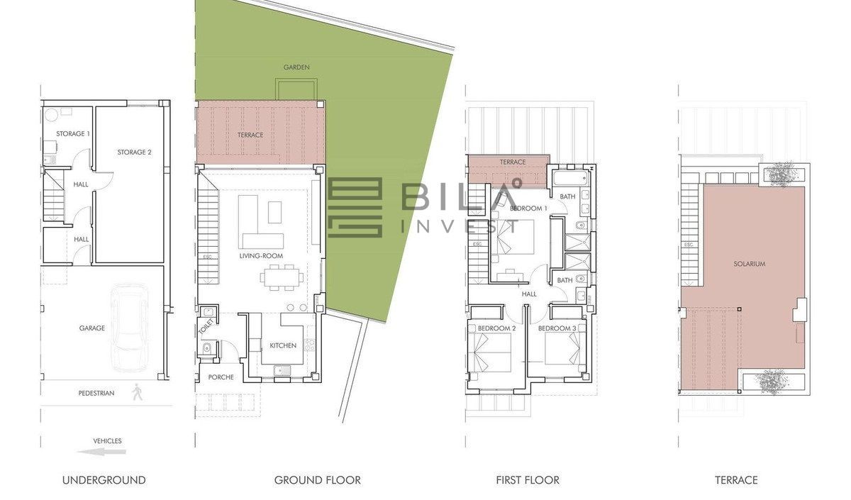 La planta principal cuenta con un sofisticado salón-comedor de concepto abierto, bañado por luz natural, que conecta con una amplia terraza de 69 m² y un agradable jardín privado de 90 m², perfectos para disfrutar del clima mediterráneo durante todo el año.