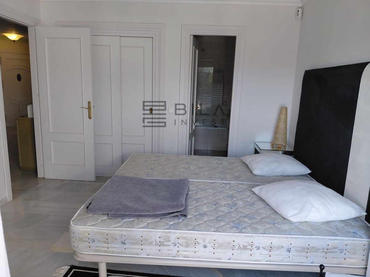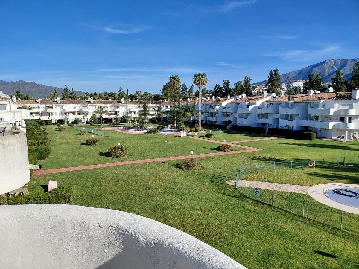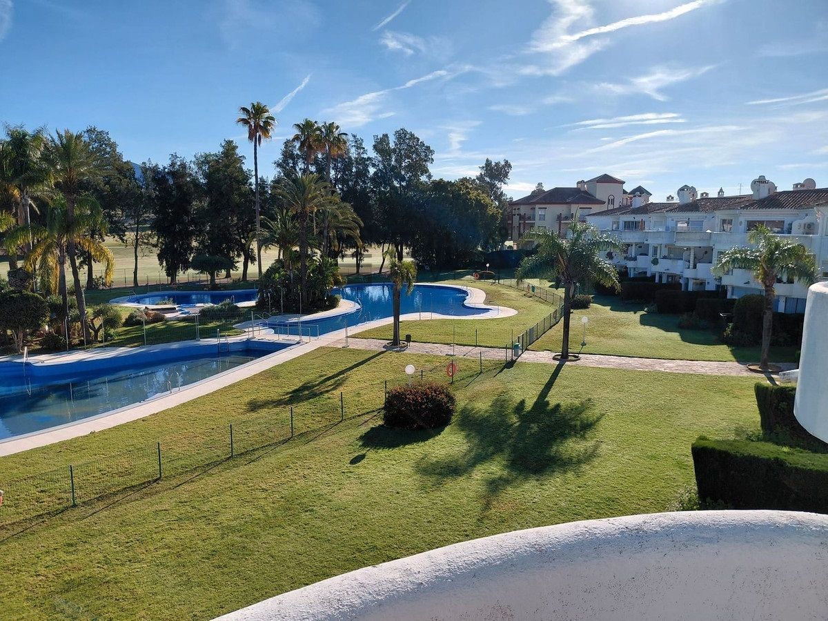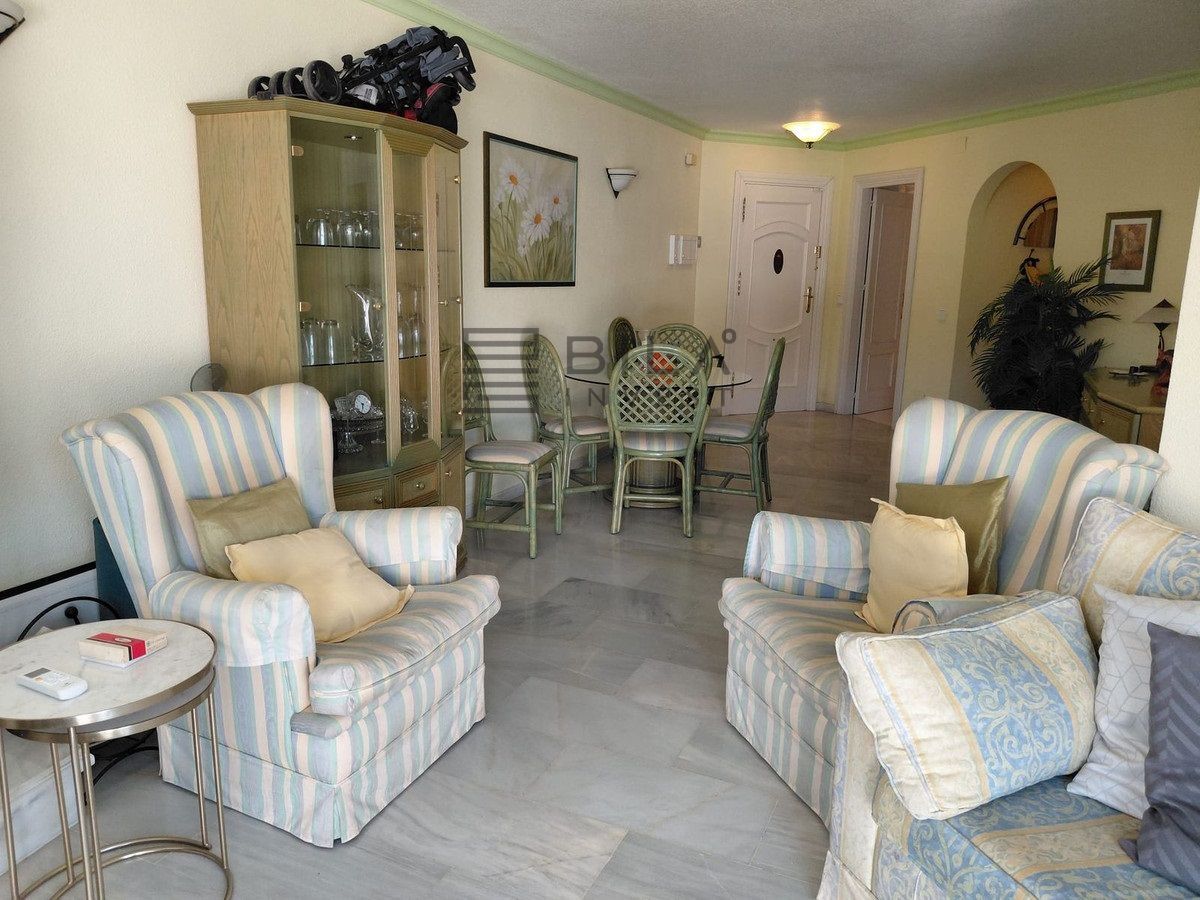 AMPLIO APARTAMENTO EN PLANTA ALTA en complejo residenciaL cerrado y seguro dentro de Mijas Golf, de fácil acceso , todo en un mismo nivel. Con 2 dormitorios de buen tamaño con armarios empotrados. Dormitorio principal con baño completo en suite, ducha, inodoro y lavabo y un segundo dormitorio con dos camas individuales y un cuarto de ducha con inodoro y lavabo. Las puertas del patio del dormitorio principal dan acceso a la terraza con vistas panorámicas y a las piscinas y los jardines. Las puertas del patio del segundo dormitorio tienen acceso a la segunda terraza.