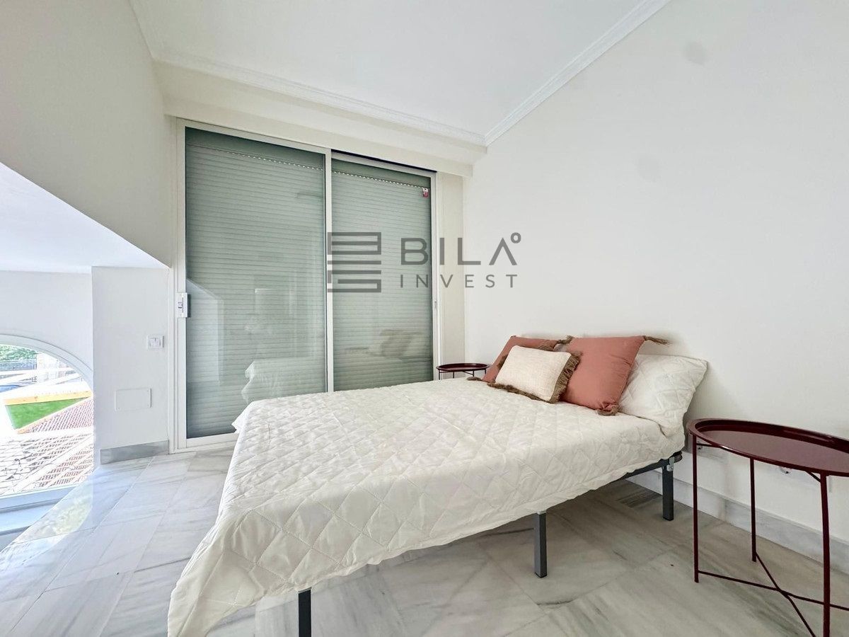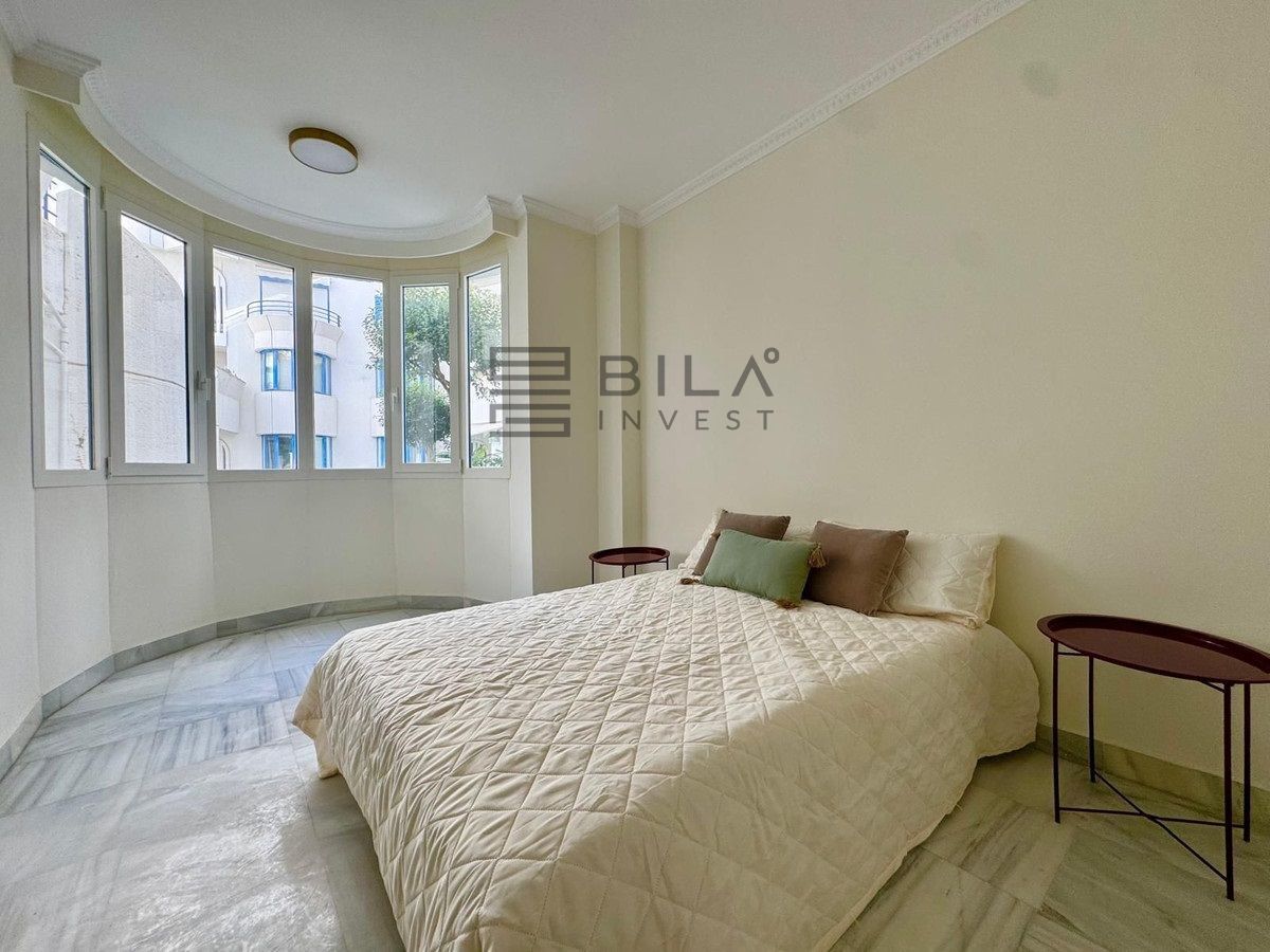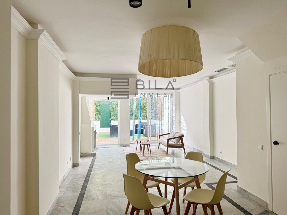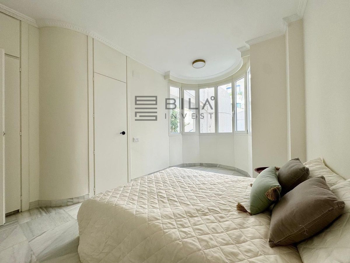 Desde la zona principal se accede a un patio privado cerrado con salida directa a la calle, que conduce al paseo marítimo de Marbella. Ubicado en una comunidad consolidada y céntrica, el complejo ofrece jardines cuidados, piscinas, gimnasio y pista de squash, aportando comodidad y calidad de vida.