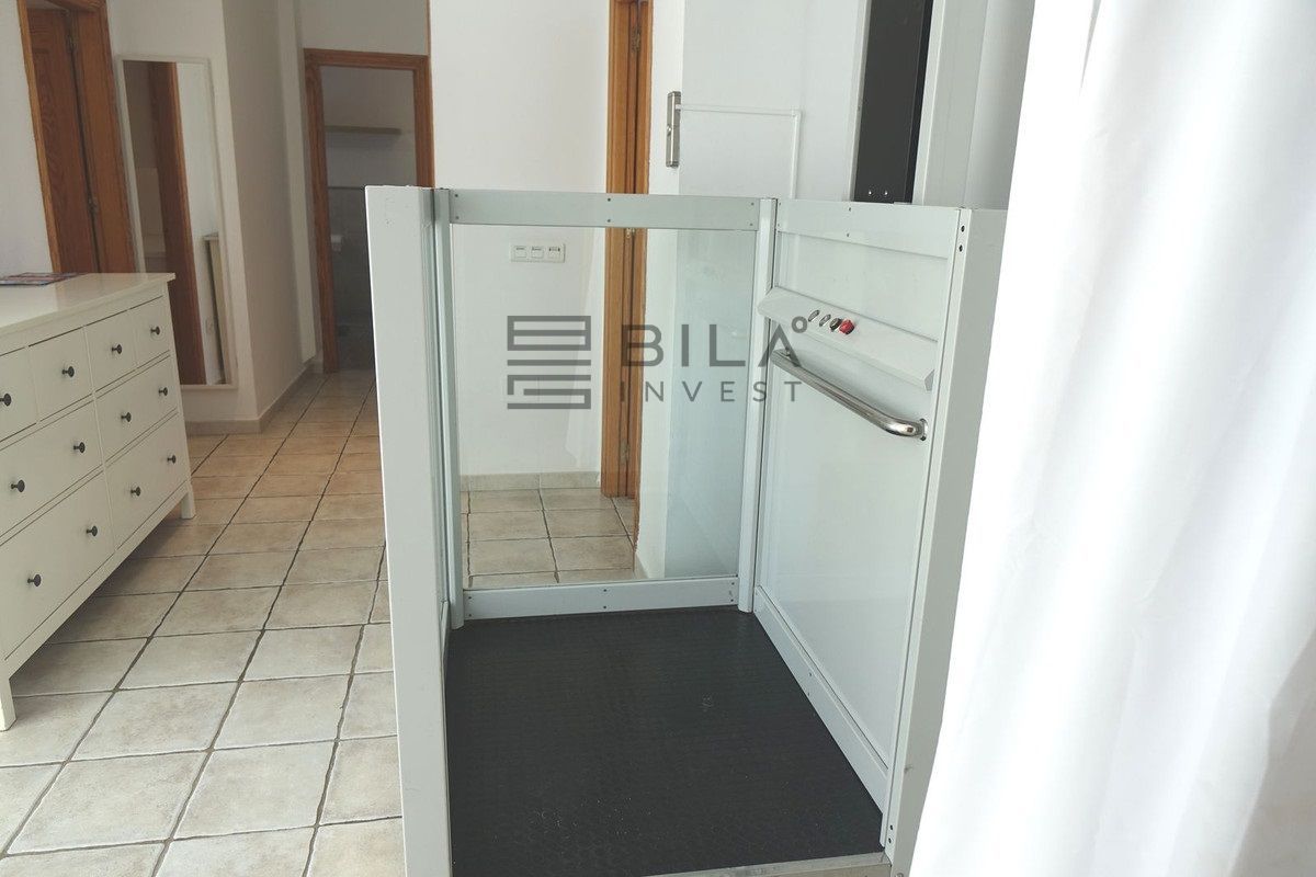 Actualmente, el acceso a la planta superior se realiza mediante ascensor privado, aunque puede volver a instalarse la escalera de caracol original si se prefiere, aportando encanto y carácter.