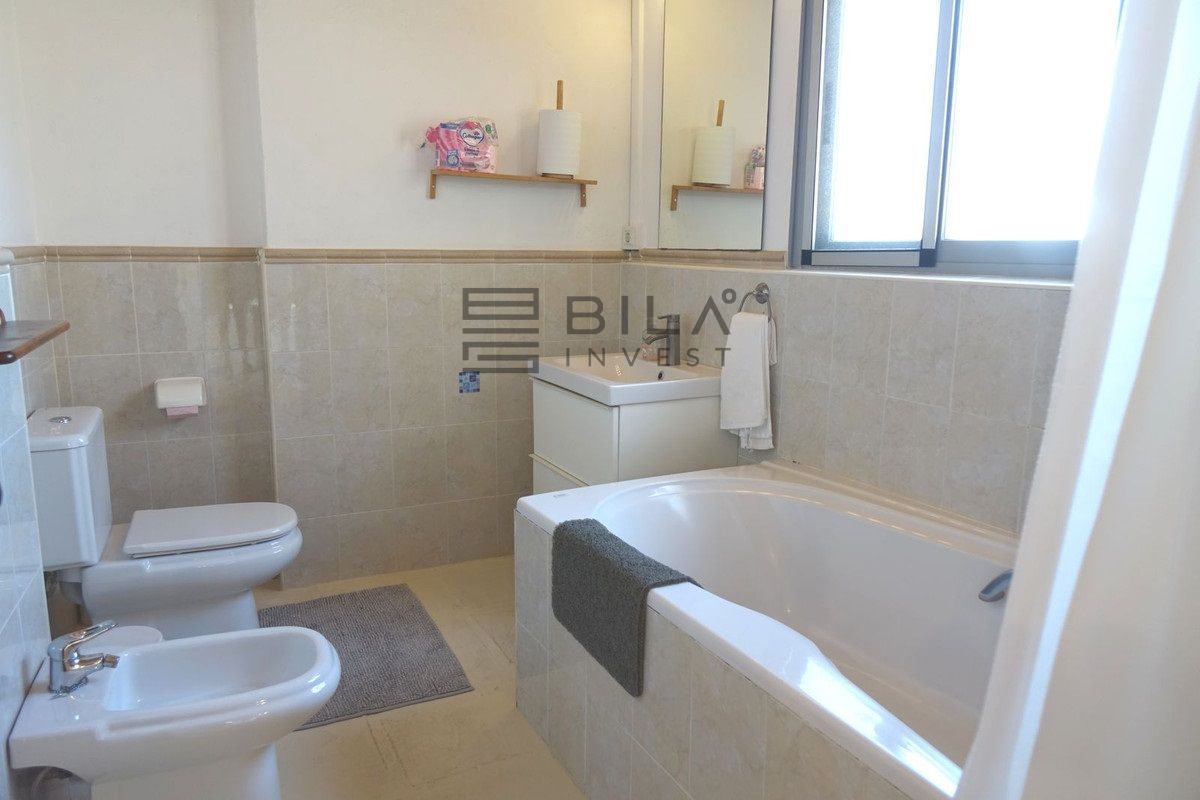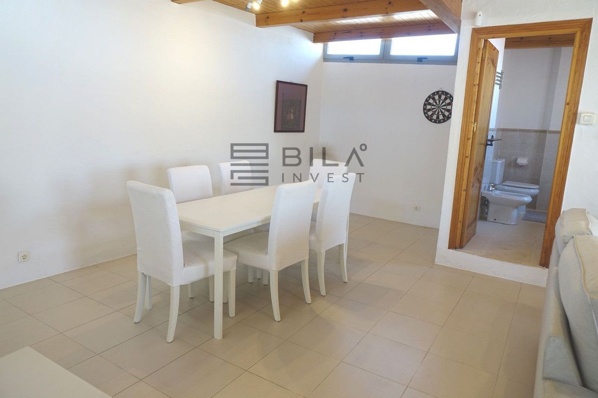 La planta superior está dedicada a un amplio salón de concepto abierto que conecta directamente con una soleada terraza descubierta—ideal para cenas al aire libre o para relajarse bajo el cielo mediterráneo. En este nivel también hay un segundo baño para mayor comodidad.