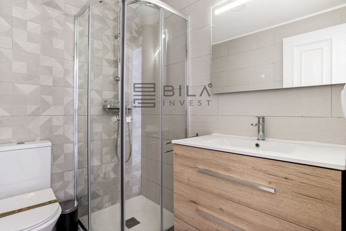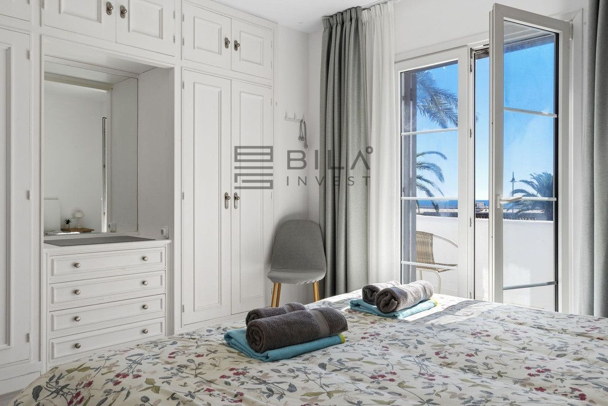 En la primera planta se encuentra el dormitorio principal con su propio baño. Este dormitorio tiene una pequeña terraza con una hermosa vista al mar. En esta planta también hay dos dormitorios más y un baño.