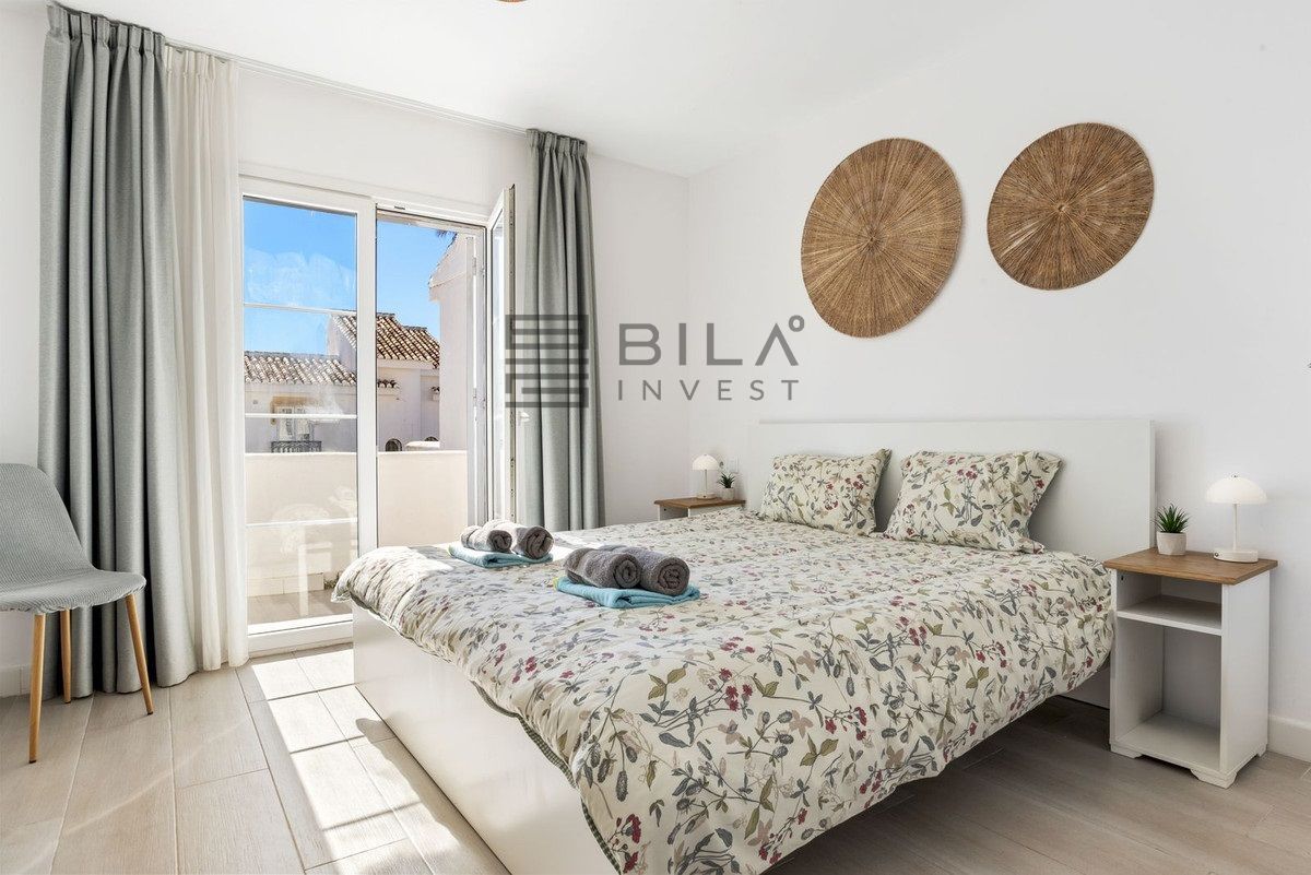 Este es un espléndido townhouse en el Mijas Playa Club, uno de los complejos más bonitos de La Cala de Mijas.