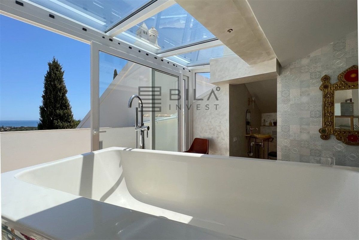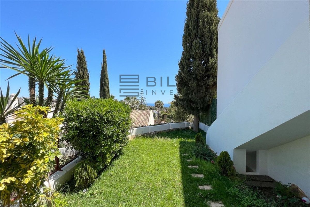 Espectacular casa adosada ubicada en una urbanización privada con pocas viviendas, pero con una amplia zona verde de más de 20.000 metros cuadrados de jardines comunitarios. Cuenta con videovigilancia y una piscina comunitaria frente al campo de golf de Cabopino, con vistas sensacionales. La casa, con sus lujosos acabados, posee una estética y un diseño interior de la más alta calidad. Los ventanales con la última tecnología alemana Schueco facilitan el bienestar en el interior. En la planta baja encontramos una cocina totalmente amueblada y equipada, un aseo y un salón-comedor con acceso a una terraza soleada y luminosa con impresionantes vistas al mar y a los alrededores. En la planta baja se encuentran tres dormitorios y dos baños, una terraza y un jardín para disfrutar del tiempo libre. En la planta superior, disponemos de una amplia estancia con techo parcialmente acristalado, ideal para crear un spa. Equipada con una lujosa bañera Kaldewei Duo alemana para dos personas, permite relajarse disfrutando de las maravillosas vistas al mar y a la montaña desde su terraza, que ofrece total privacidad y, de nuevo, increíbles vistas panorámicas.