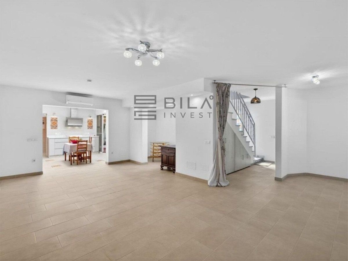 En la planta principal hay un salón muy luminoso con espacio para oficina y una cocina totalmente equipada con electrodomésticos alemanes de alta calidad, con acceso directo a terraza y jardín privado orientado al suroeste de aproximadamente 100 m². También dispone de aseo de invitados y trastero.