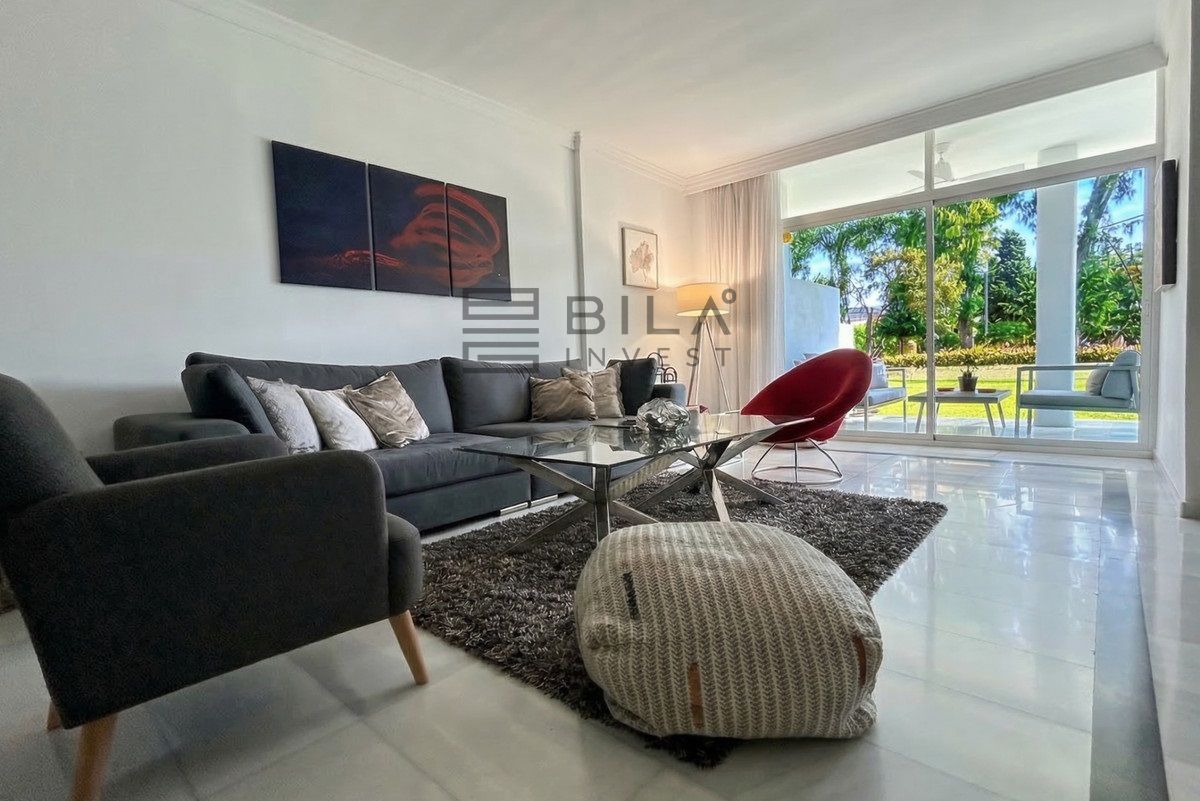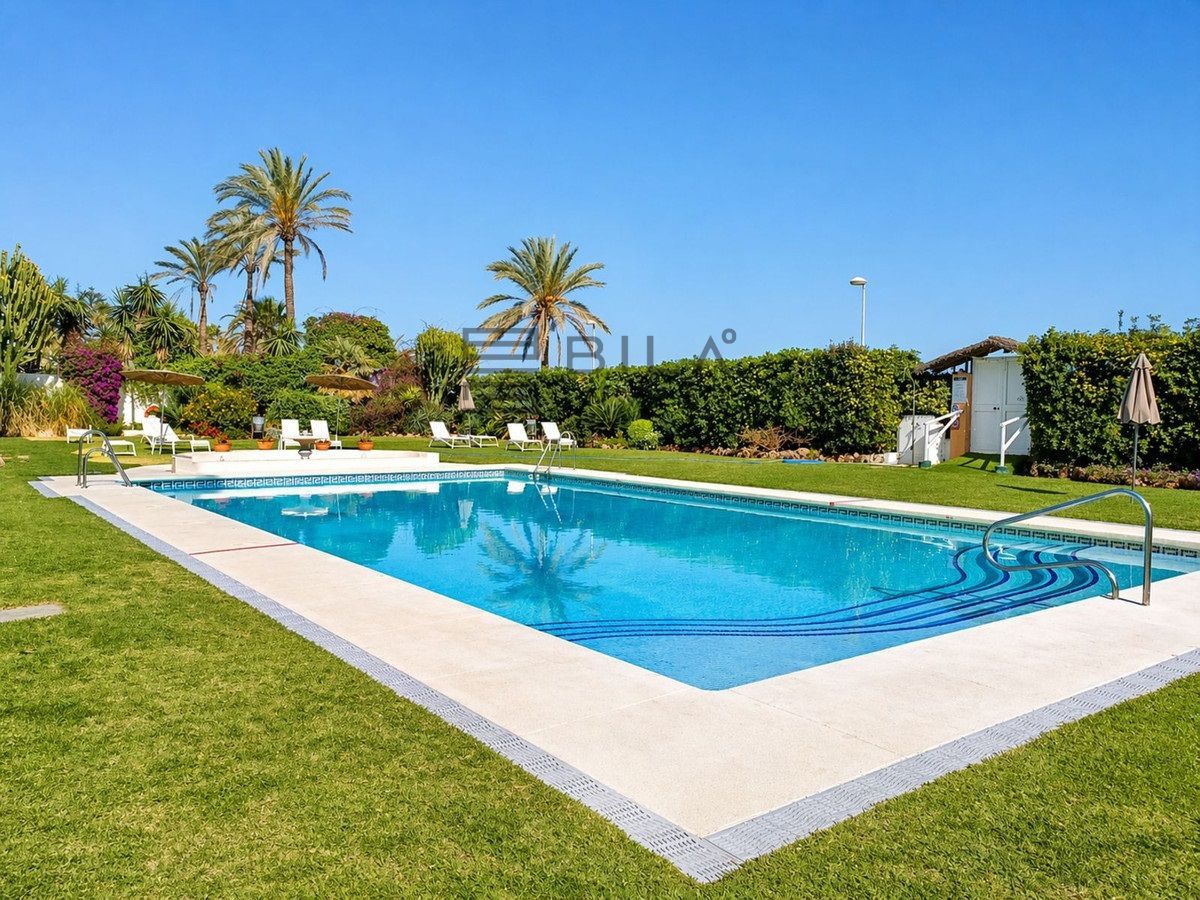 La urbanización cuenta con cuidados jardines y piscina comunitaria con acceso directo a la playa y al reconocido Mistral Beach Club, uno de los beach clubs más exclusivos de la zona.