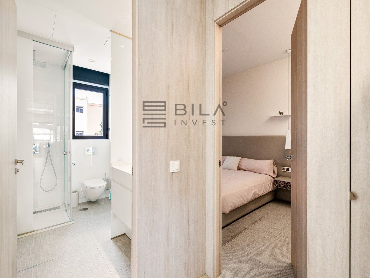 La distribución cuenta con un espacio abierto de salón comedor y cocina con acceso directo a la terraza. Todos los dormitorios tienen buen tamaño e incluyen baños modernos con duchas tipo walk in. El diseño dúplex ofrece una clara separación entre las zonas de día y de noche. La luz natural llena la vivienda y mejora la conexión interior exterior.