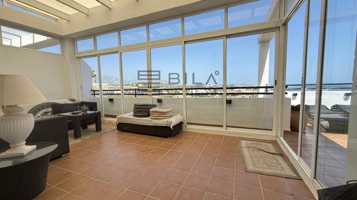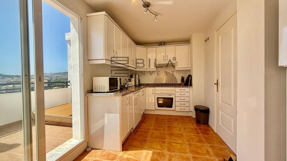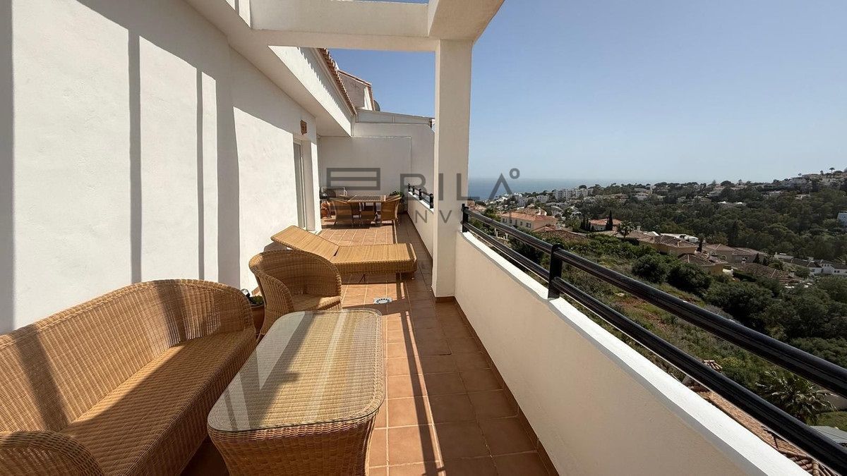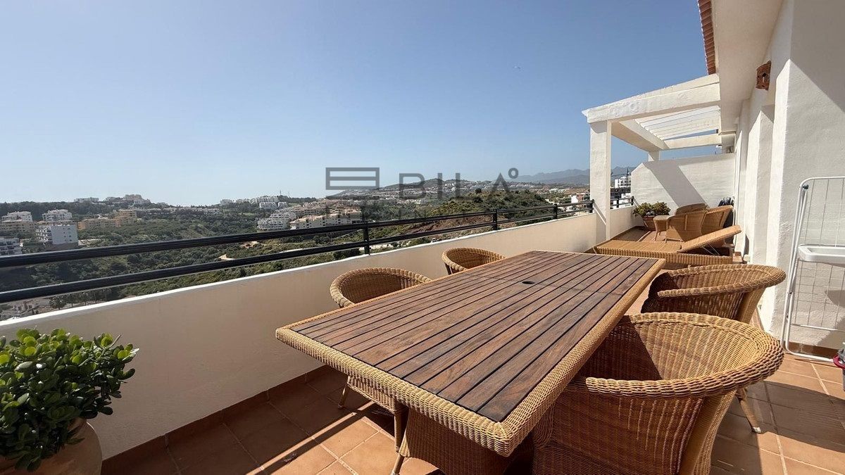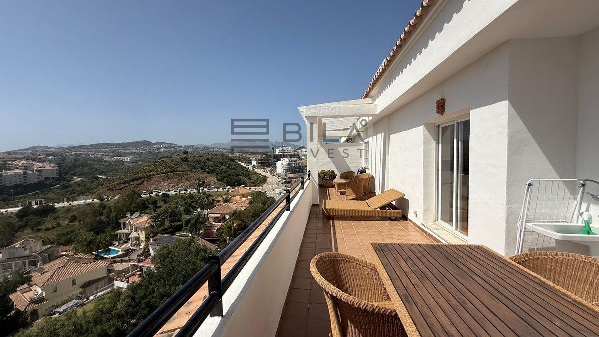Este apartamento de dos dormitorios y dos baños, situado en la última planta, cuenta con unas vistas y un espacio exterior realmente impresionantes. La vivienda se encuentra en la siempre popular zona de La Cala de Mijas y se ha mantenido en un estado impecable, incluyendo la instalación de ventanas adicionales en la terraza orientada al este, lo que le proporciona una estancia más que puede disfrutar durante todo el año. La amplia cocina independiente da acceso a la terraza orientada al oeste, donde podrá disfrutar del sol de la tarde y la noche y contemplar unas puestas de sol realmente espectaculares. Los dos dormitorios dobles tienen acceso a la terraza; uno cuenta con baño en suite y el otro puede utilizar el cuarto de baño de invitados. La propiedad cuenta con la ventaja añadida de aire acondicionado frío y caliente, una plaza de aparcamiento subterráneo, un amplio trastero privado y el uso de los hermosos jardines comunitarios y la piscina. Una propiedad única con una licencia de alquiler vacacional vigente, lo que la convierte en una magnífica inversión.