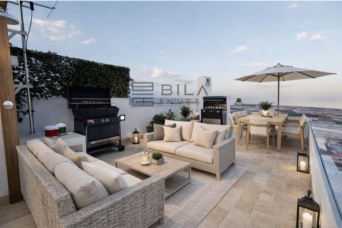 Los áticos cuentan con amplios soláriums privados, ideales para tomar el sol, crear una zona chill-out o disfrutar de reuniones al aire libre con vistas al cielo mediterráneo. Su diseño contemporáneo y los materiales de primera calidad garantizan un ambiente elegante y acogedor en cada rincón.
