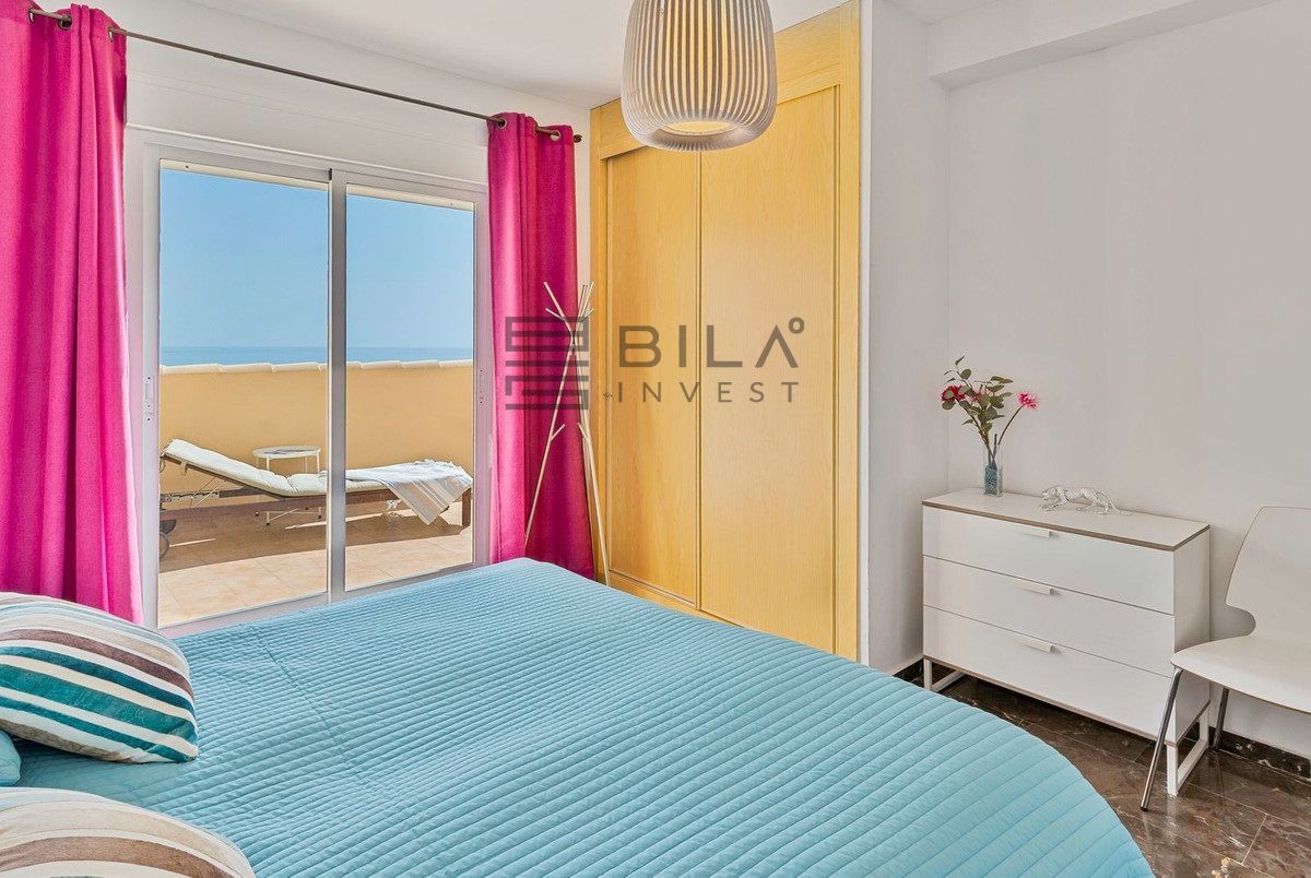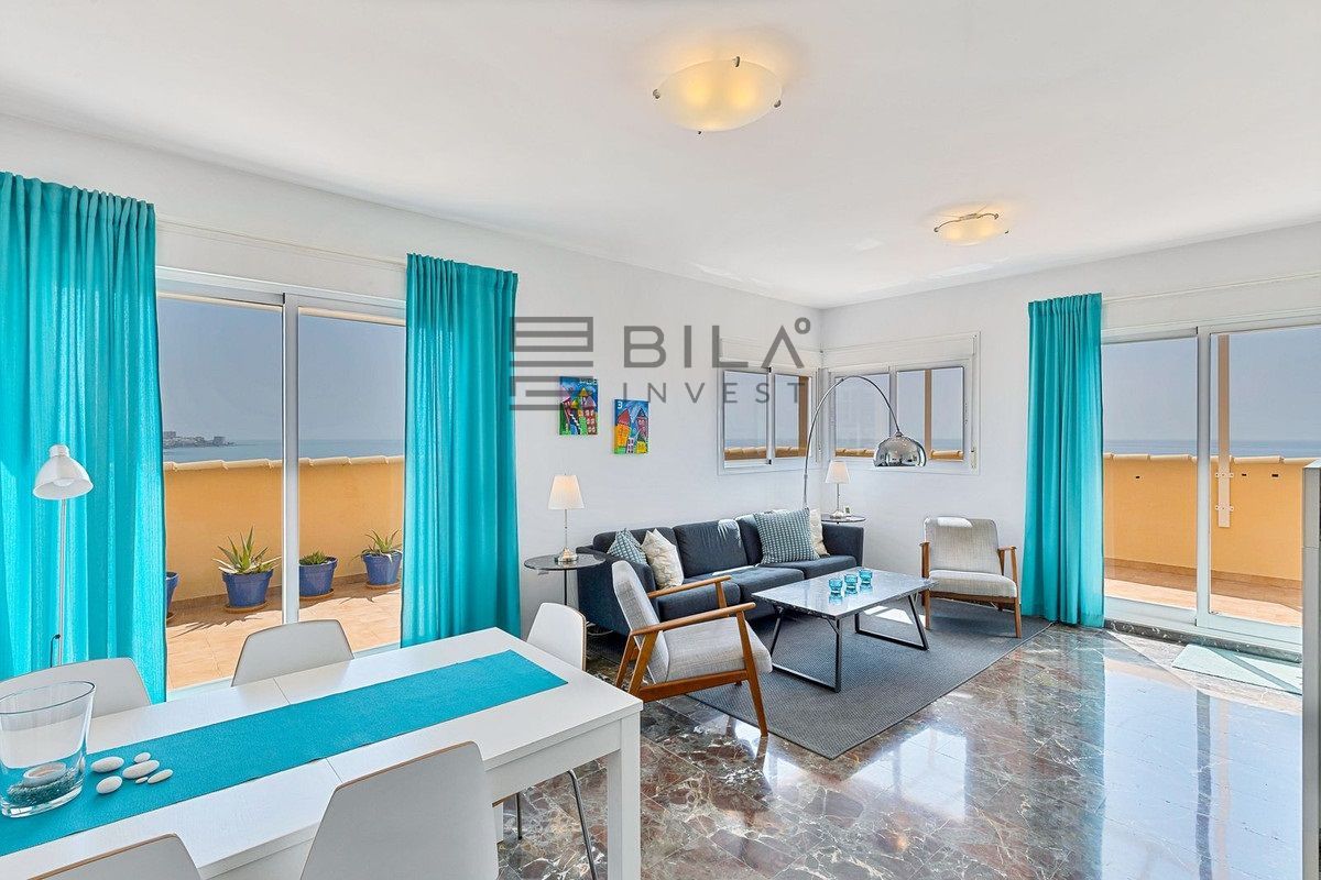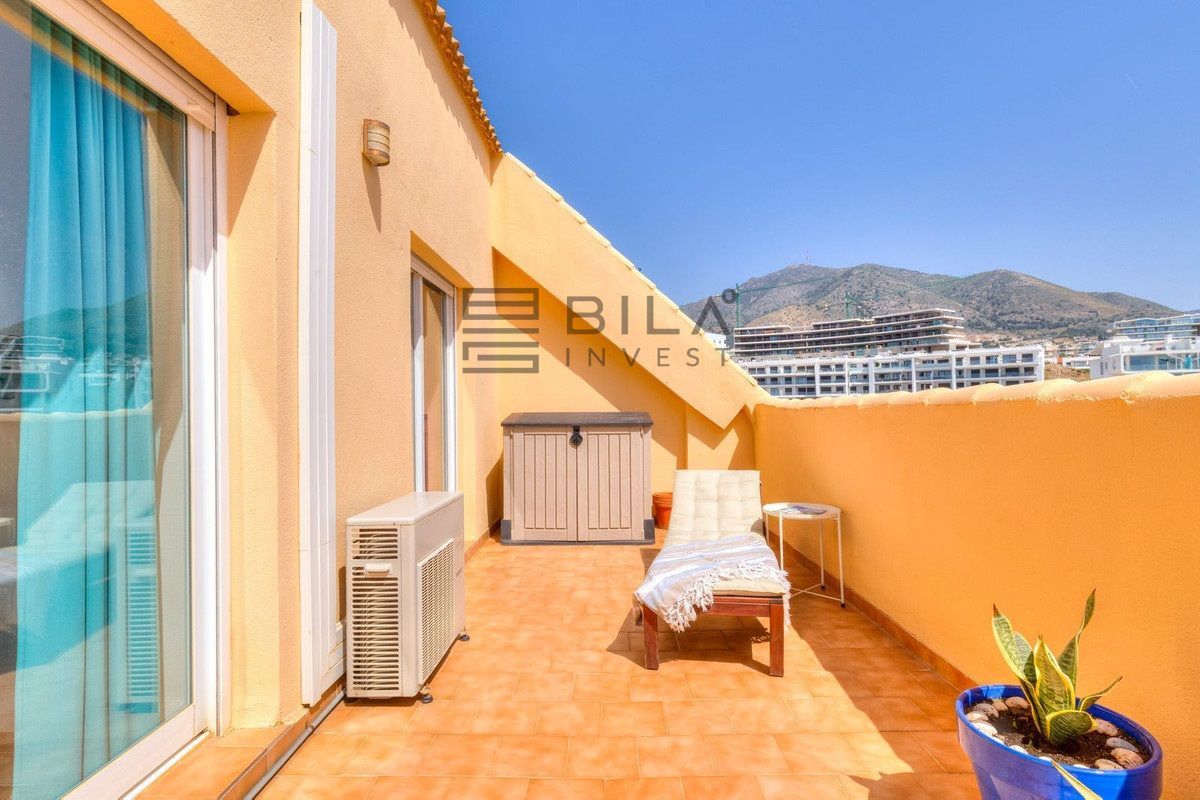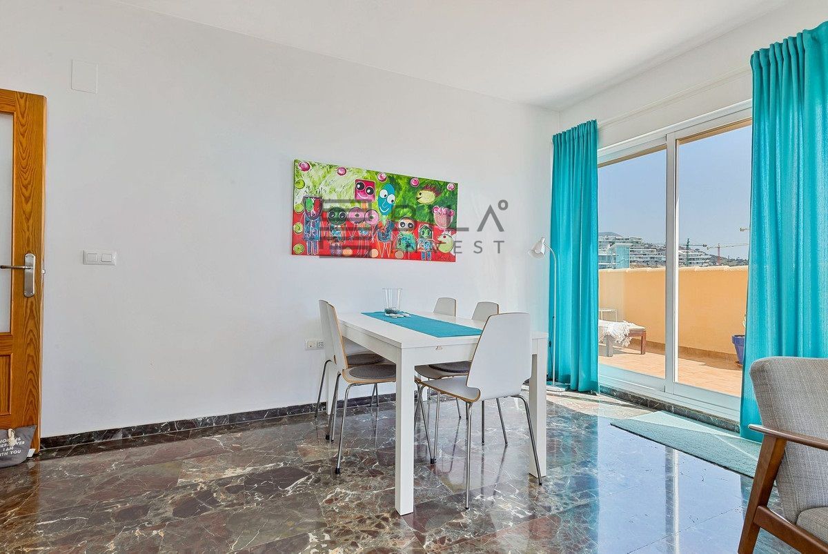 Ático con fantásticas vistas al mar, a pocos minutos andando de la playa y de la estación de tren de Carvajal. La amplia terraza haciendo esquina, de 53 m² , ofrece sol y sombra, con espacio suficiente para una mesa de comedor, tumbonas y barbacoa.