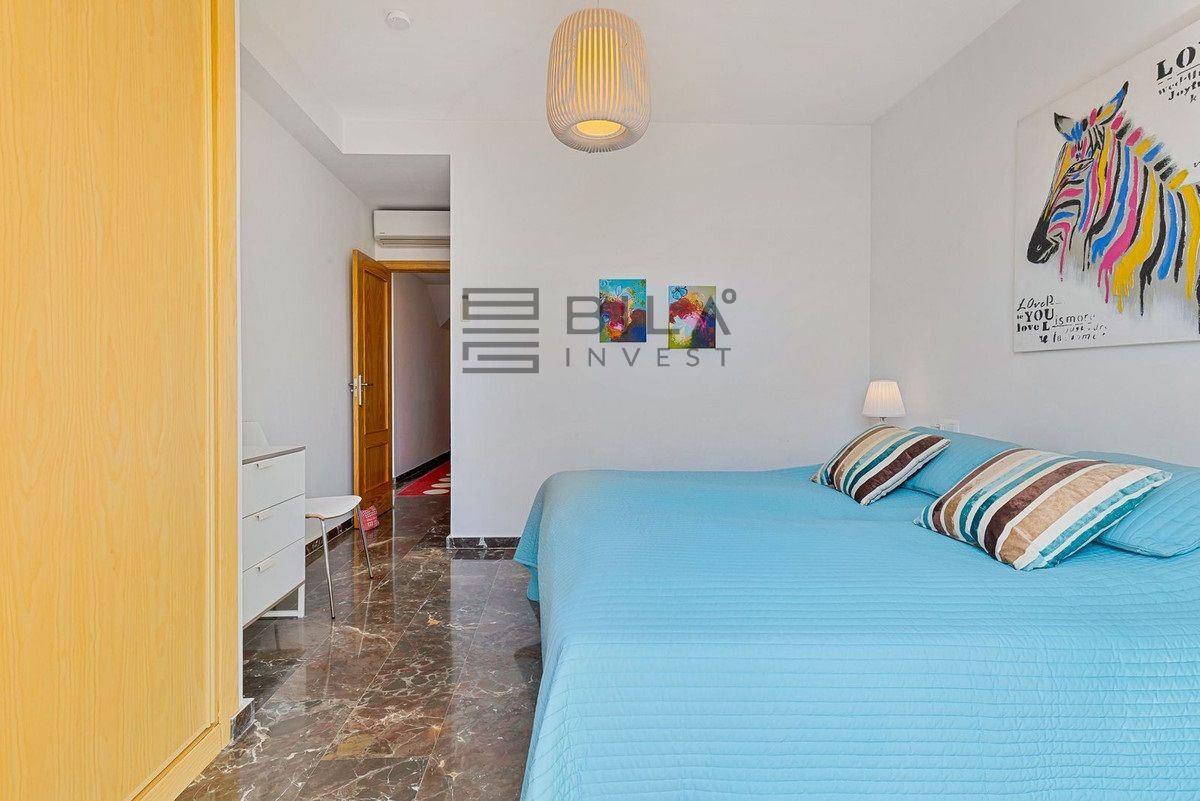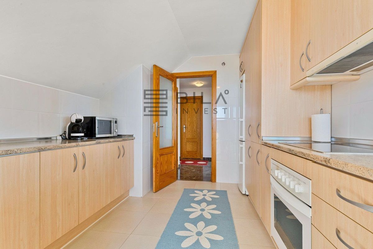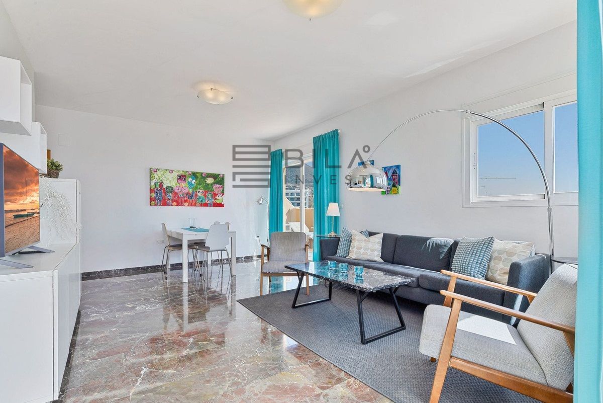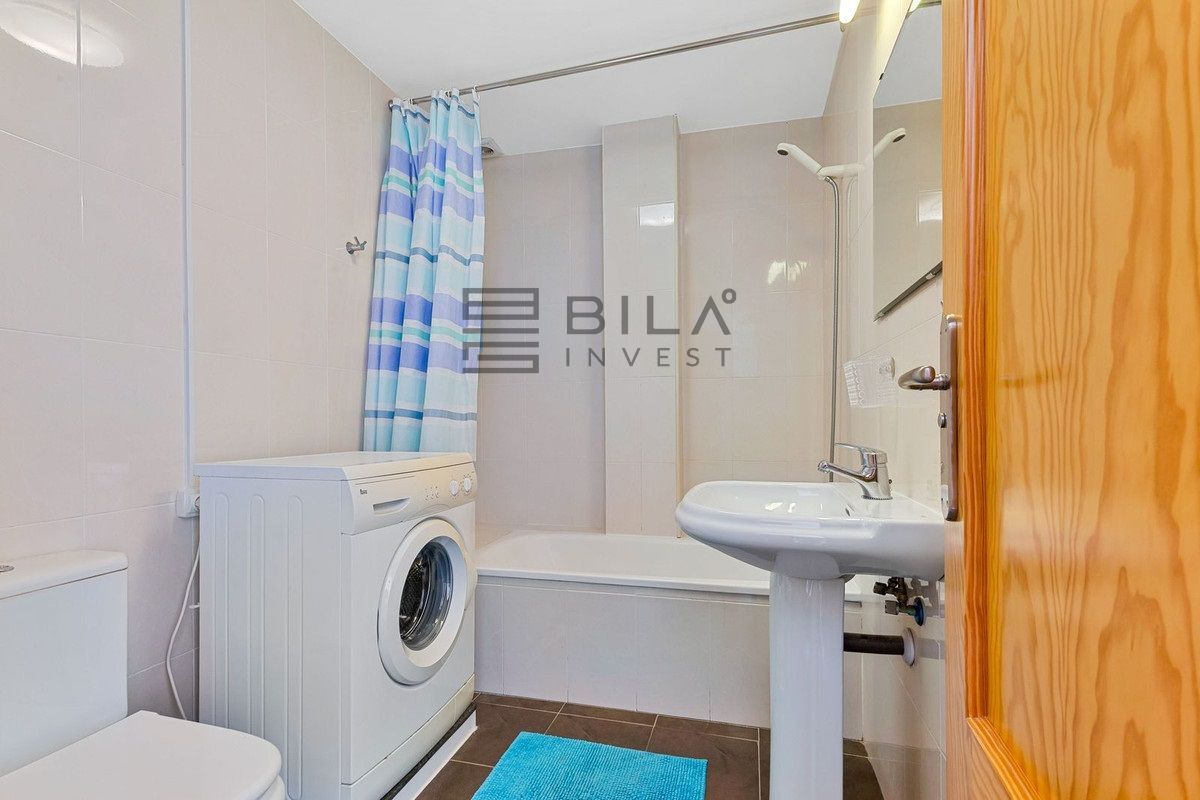 Al entrar, encontramos un recibidor con espacio para colgar ropa y zapatos, que da paso a un luminoso salón con ventanas en dos direcciones y acceso a la terraza. La cocina, contigua al salón, está totalmente equipada, con una amplia encimera, una despensa para utensilios de limpieza y una puerta con acceso directo a la terraza.