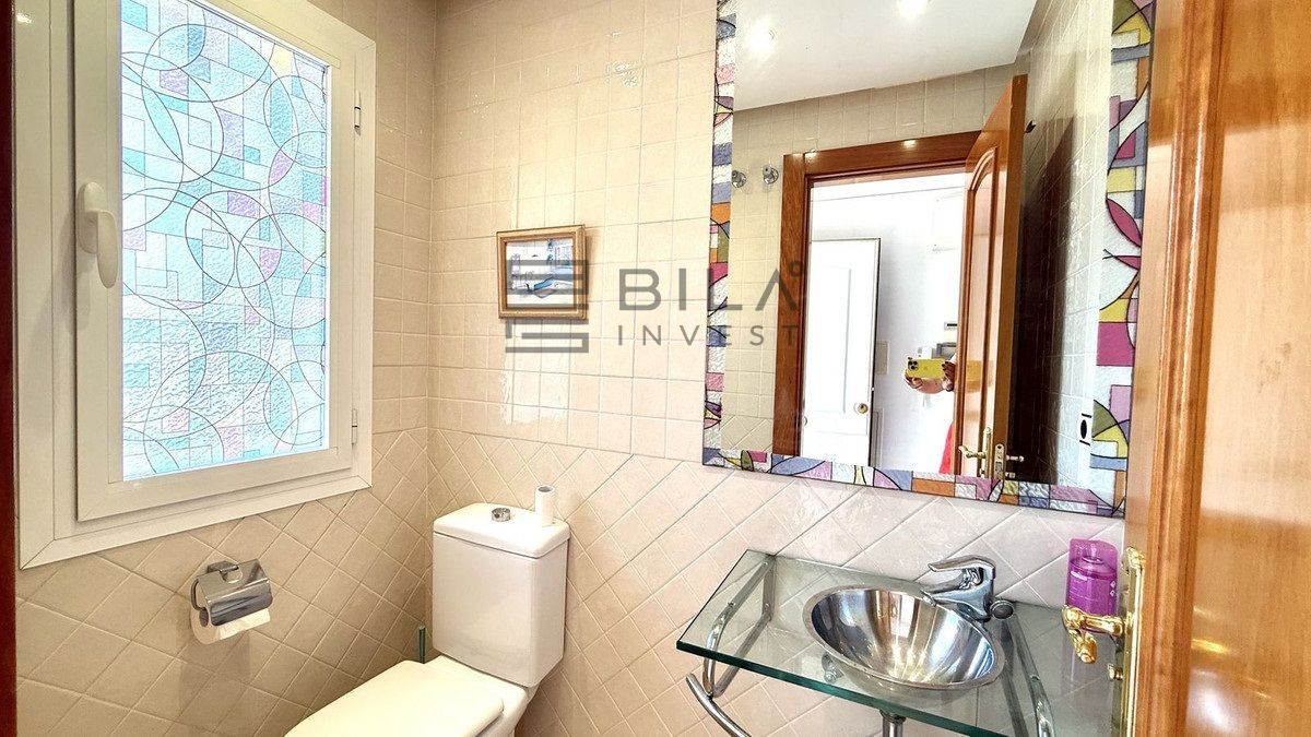 En la planta principal, la casa ofrece un salón-comedor de concepto abierto, perfecto para reuniones familiares o noches de relax. La cocina es independiente y está totalmente equipada, con un lavadero contiguo. Además, hay un aseo para invitados en esta planta.