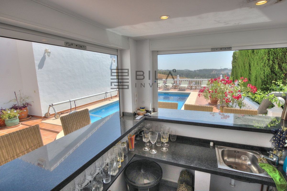 Un precioso chalet situado en una tranquila y residencial calle sin salida a poca distancia de La Cala de Mijas y las playas. Hay 3 dormitorios dobles y 2 cuartos de ducha en la casa principal. Esta moderna propiedad también se beneficia de una piscina privada climatizada y vistas panorámicas desde esta terraza, zona de bar muy coqueta, aire acondicionado, luminoso salón comedor y una amplia cocina totalmente equipada. Hay un apartamento adicional en la planta baja con un dormitorio enorme, baño completo y otra terraza así que un montón de espacio para toda la familia. Otras características incluyen un garaje privado y un trastero práctico así que venga y eche un vistazo hoy.