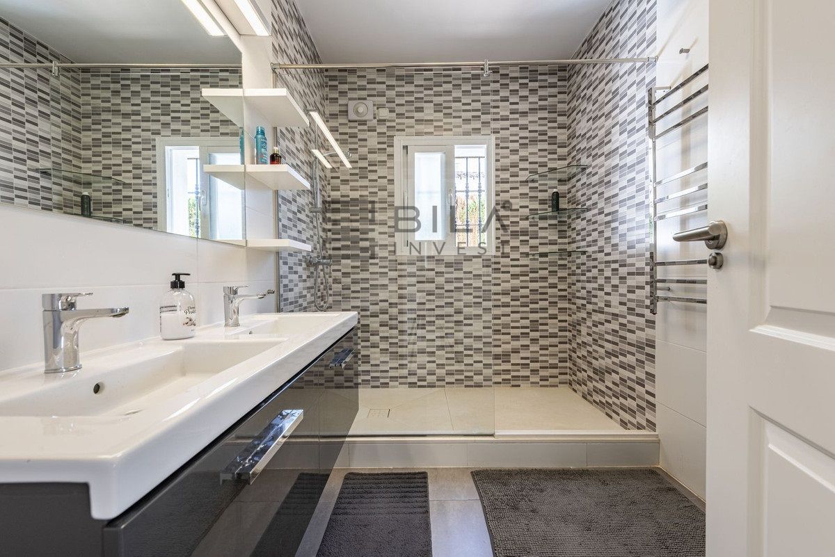La villa está equipada con amplios armarios empotrados, persianas eléctricas, aire acondicionado en todas las habitaciones y extractores incorporados en los baños.