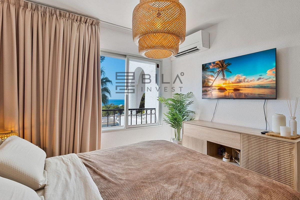 La vivienda, construida en 1984, cuenta con 2 amplios dormitorios, 1 baño completo, y una cocina totalmente equipada de estilo abierto que se integra perfectamente con el espacioso salón. Desde el salón se accede directamente a una terraza privada con impresionantes vistas al mar. Los dormitorios disponen de mucho espacio de almacenamiento y todo el piso se encuentra en excelente estado, listo para entrar a vivir.