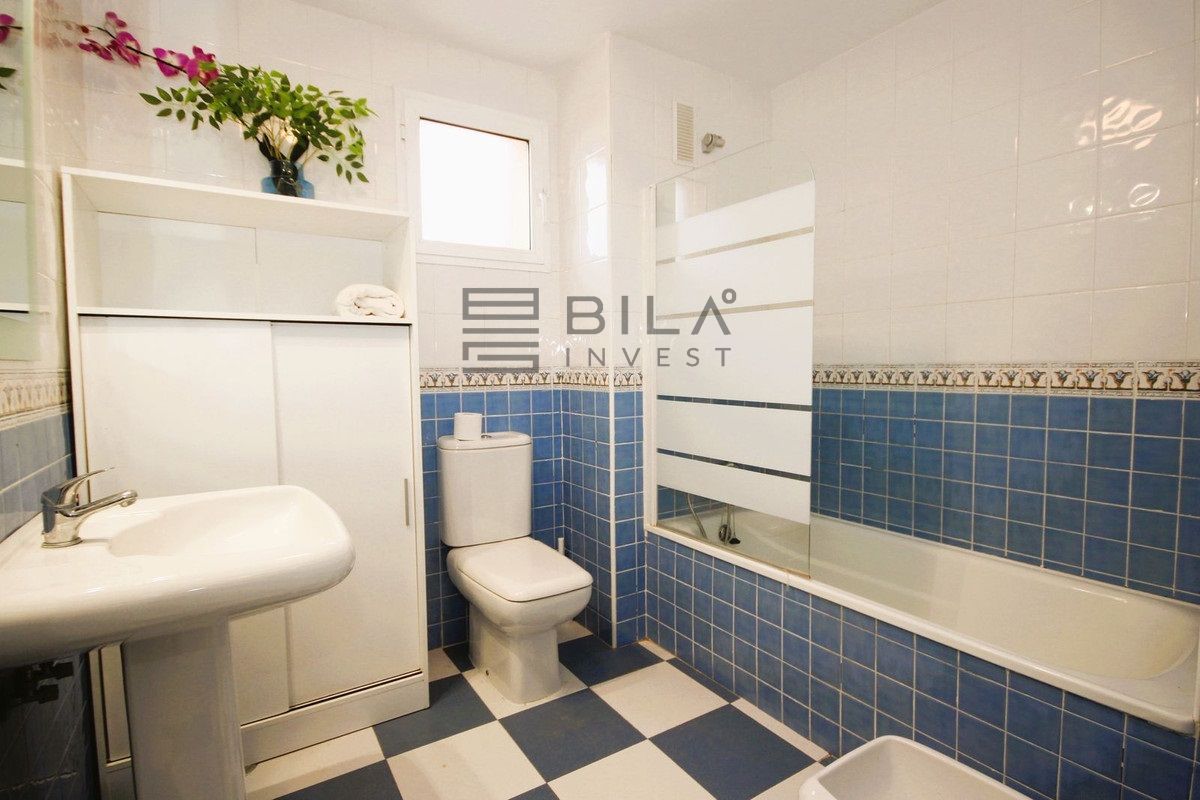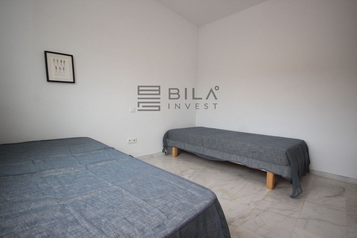 Nivel inferior: luminosa sala de estar, con acceso a la terraza inferior con hermosas vistas frontales al mar, cocina, 2 dormitorios y 2 baños, uno de ellos en suite.