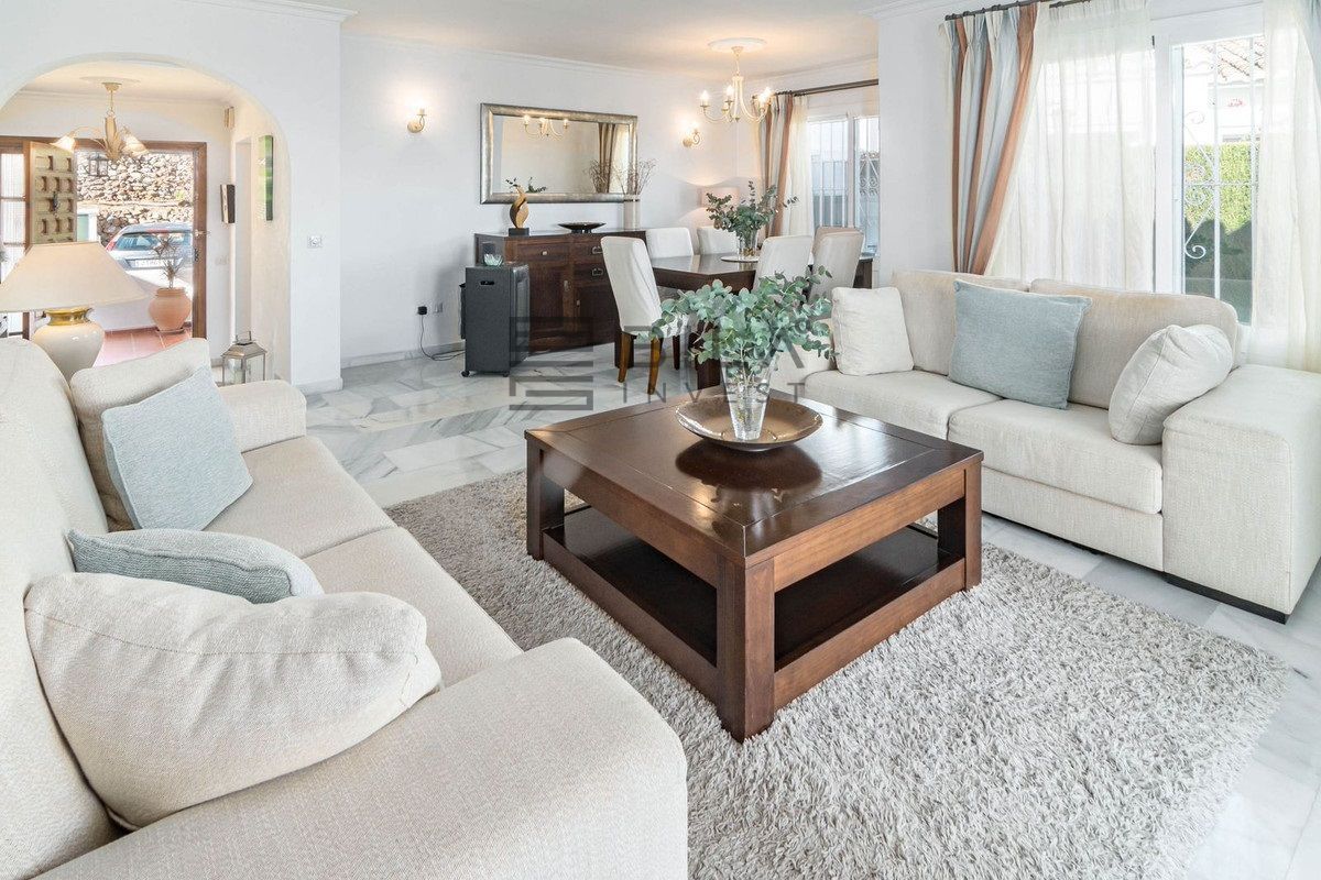 Chalet independiente en venta en Mijas, Málaga, en la zona de Calahonda. 113 m2 construidos distribuidos en 3 habitaciones y 2 baños, con armarios empotrados y cocina amueblada. Cuenta con chimenea y aire acondicionado, además de servicios de agua y luz para una comodidad diaria.
